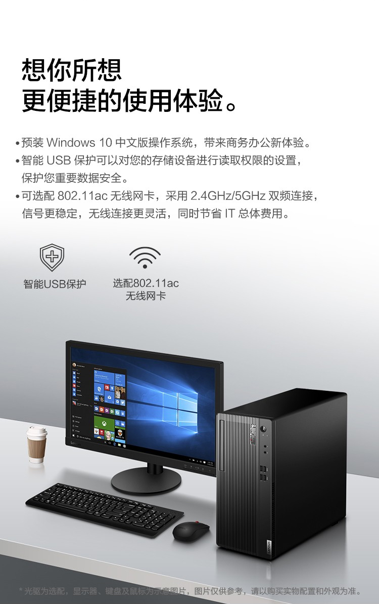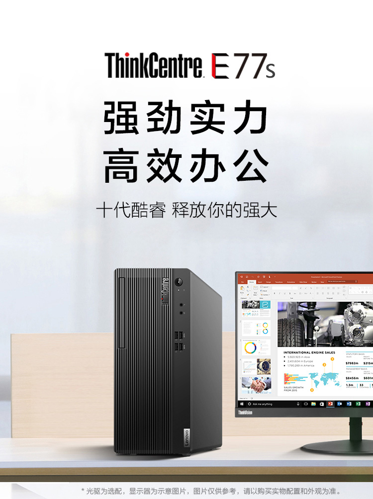 聯想 E77s 商用臺式機電腦 i3-10105/8G/M.2 256GSSD/集成顯卡/無光驅/180W/USB鍵鼠/Win10 21.5英寸顯示器 (計價單位:臺)