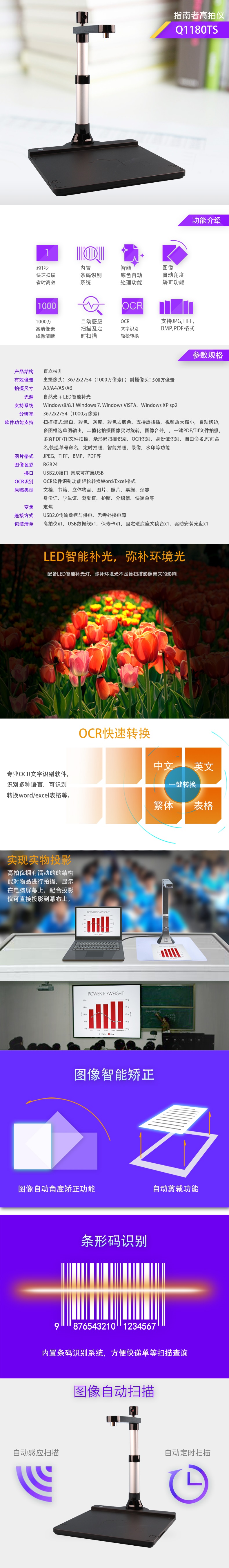 指南者該朋友 Q1180TS 雙攝像頭1000萬(wàn)像素 A3高清便攜式掃描儀