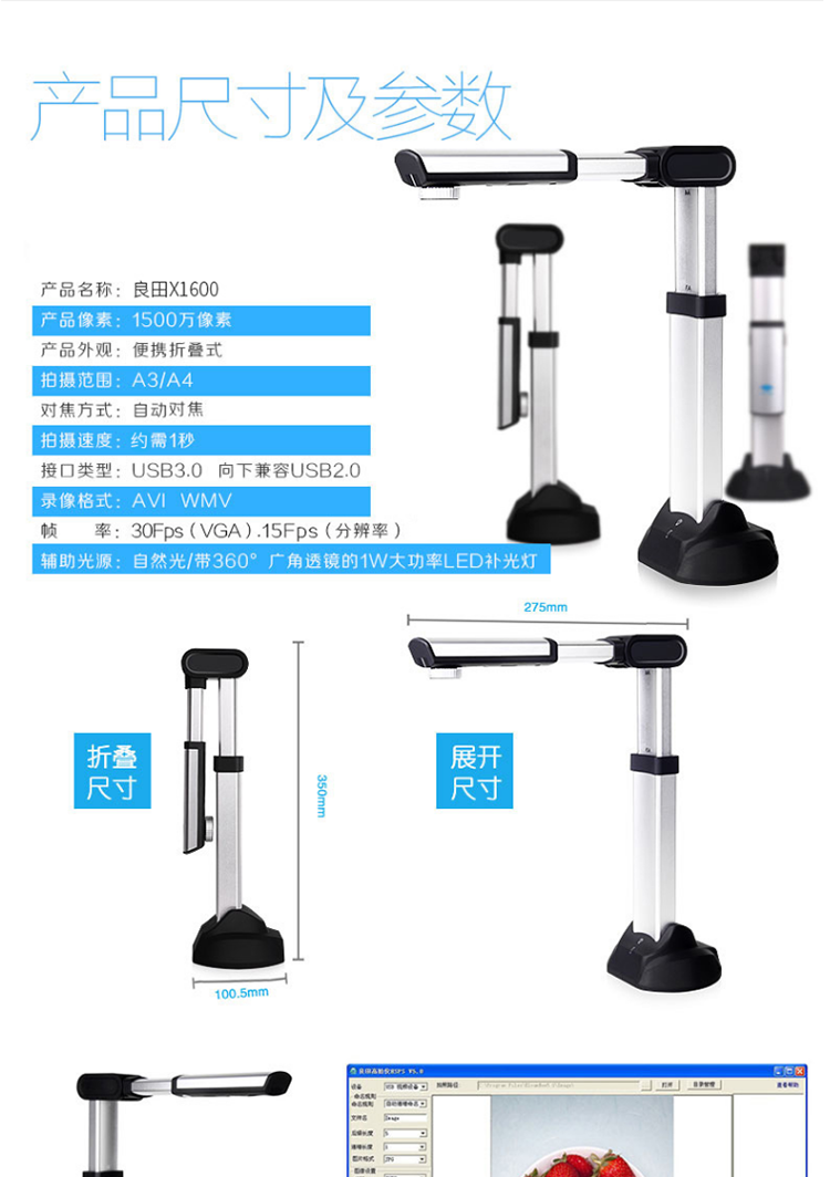 良田X1600 A3幅面高拍儀 1500萬像素 自動對焦 可掃描黑白/灰色/彩色