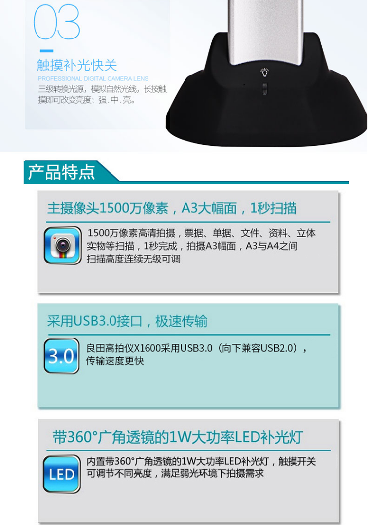 指南者 Q160TS 高拍儀高清專業辦公硬底座(1600萬)