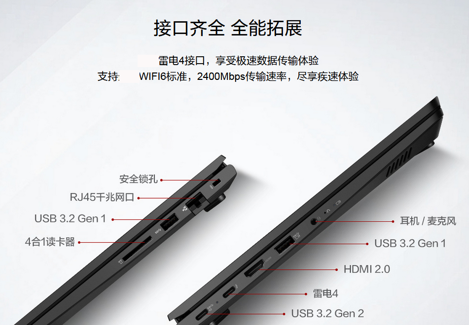 特性 | 雷電接口,攝像頭物理開關,大內存(16GB及以上) |