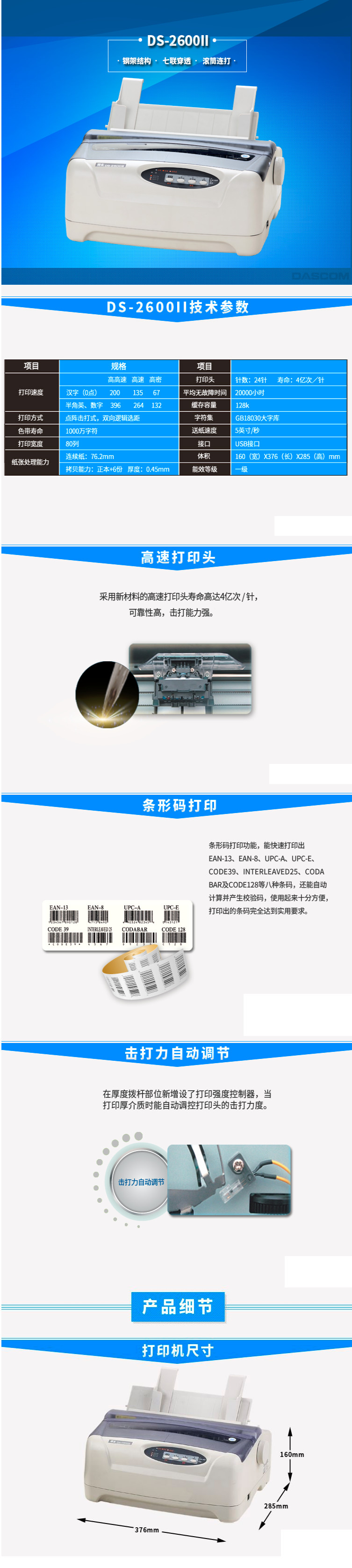 得實(Dascom)DS-2600II 多功能超高速24針80列通用打印機×白色