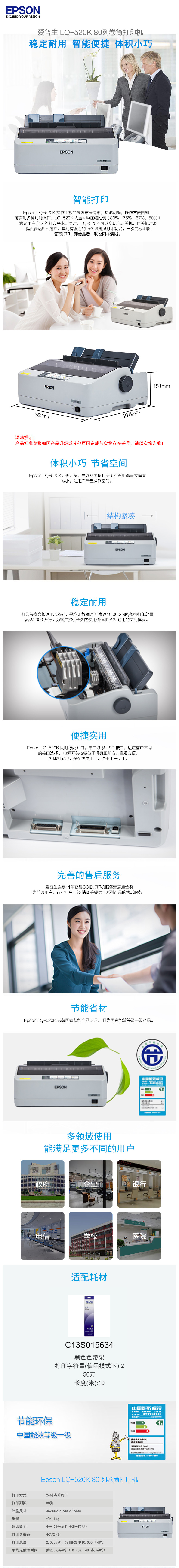 愛普生 LQ-520K 80列卷筒針式打印機×官方標配