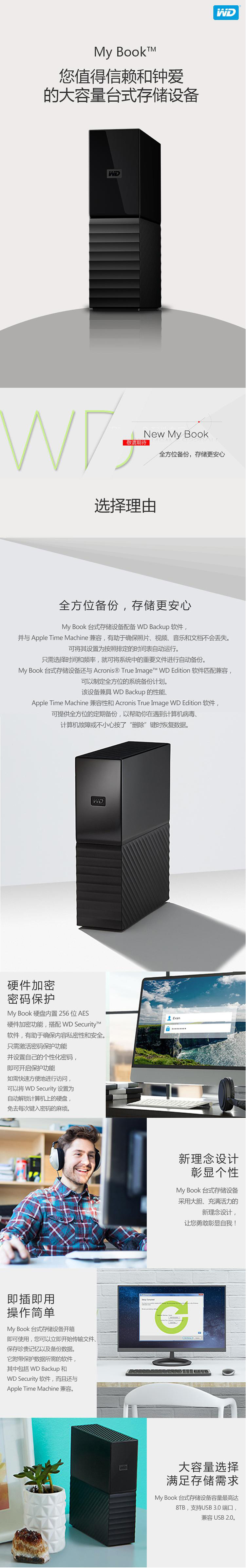 西部數據(WD)USB3.0 桌面硬盤 My Book 3.5英寸WDBBGB0080HBK×8TB