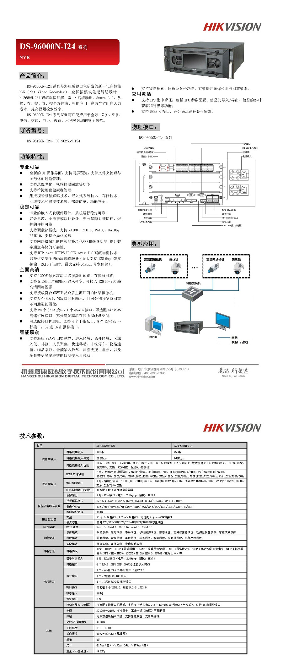 海康威視 DS-96128N-I24 超高清視頻服務(wù)器(含安裝)×單位:臺