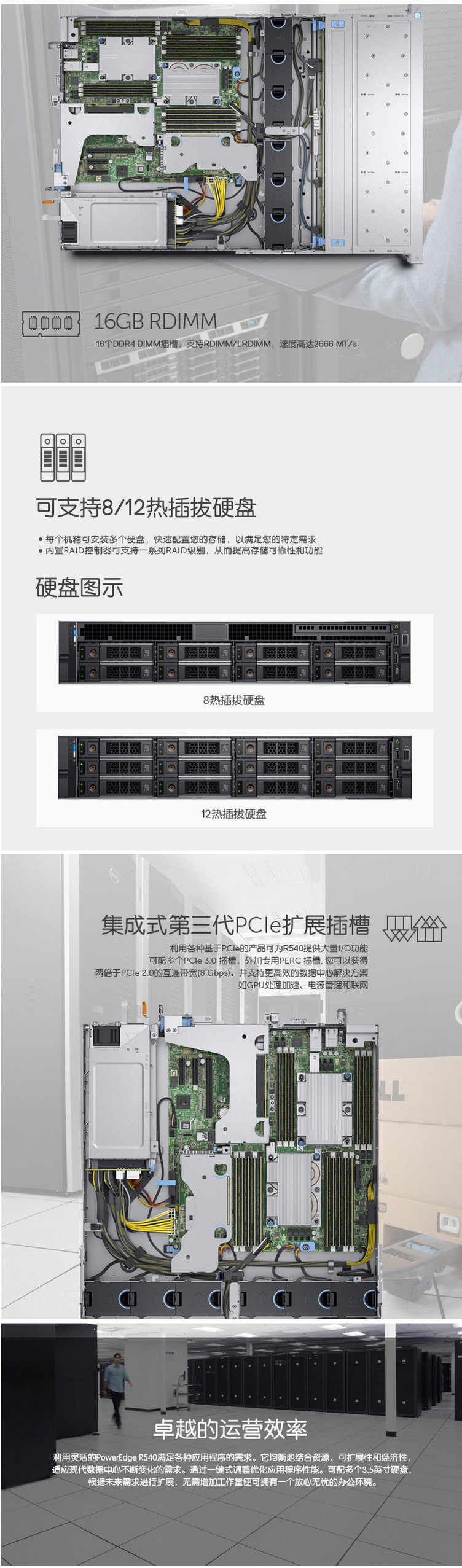 戴爾PowerEdge R540 2U機架式服務器(至強銀牌4210R*2/32GB內存/4TB企業級硬盤*3/750W電源/DVDRW/含22U機柜導 及安裝調試/3年免費保修)×單位:臺