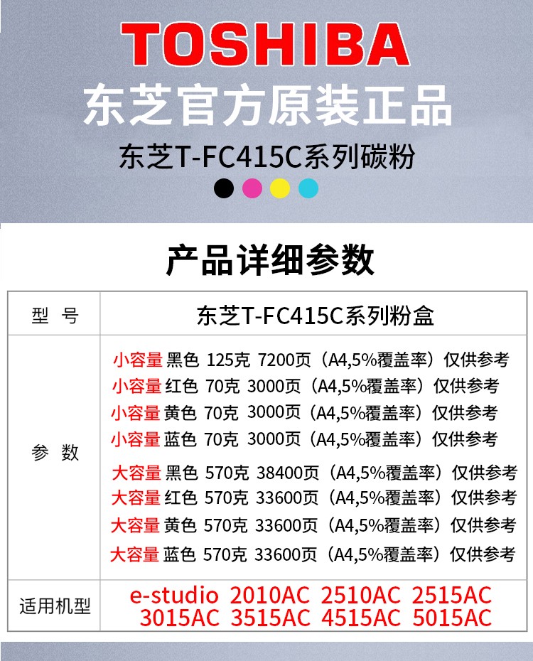 東芝(TOSHIBA)T-FC415C墨粉盒(適用2010AC/2110AC/2515AC/3015AC)大容量一套(黑/品紅/黃/青)