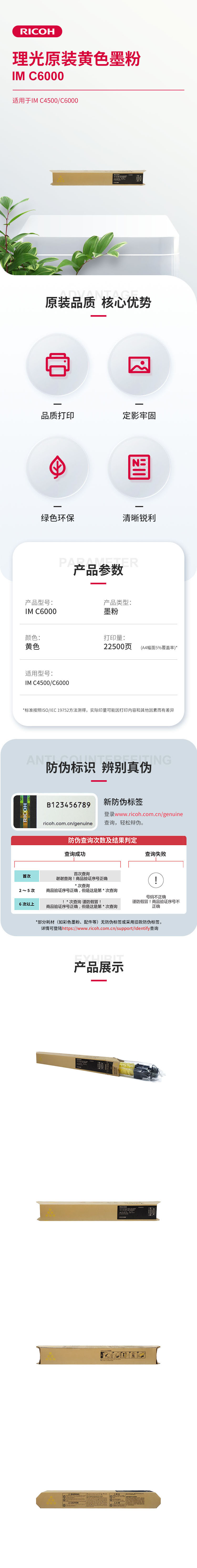 理光 IM C6000型 黃色碳粉粉盒 適用IM C4500 / IM C6000