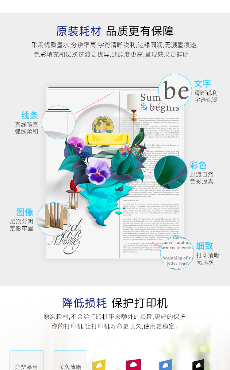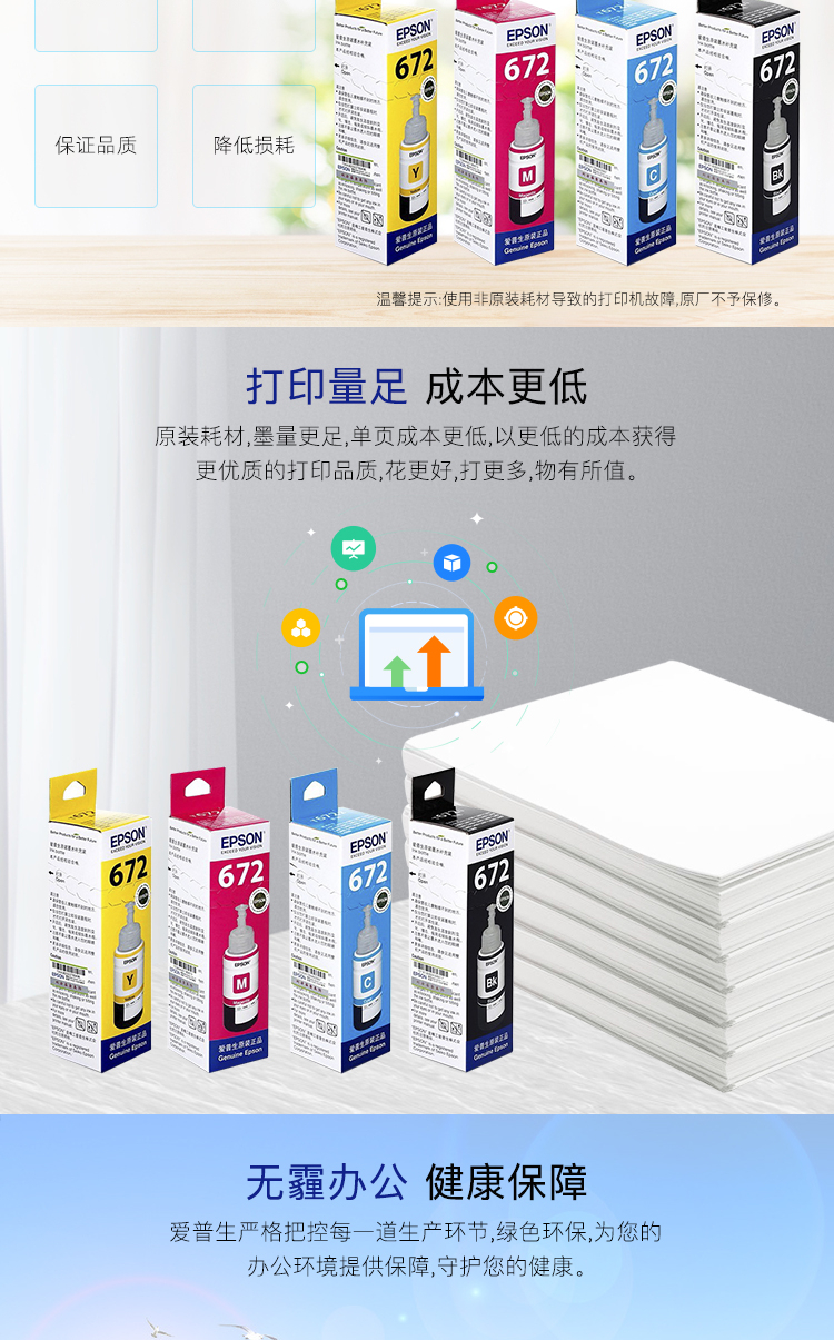 打印量 | 672墨水打印量:每套耗材可打印黑色A4文檔4000 頁/彩色A4文檔6500頁,其他尺寸暫無測試,沒有具體打印量 |