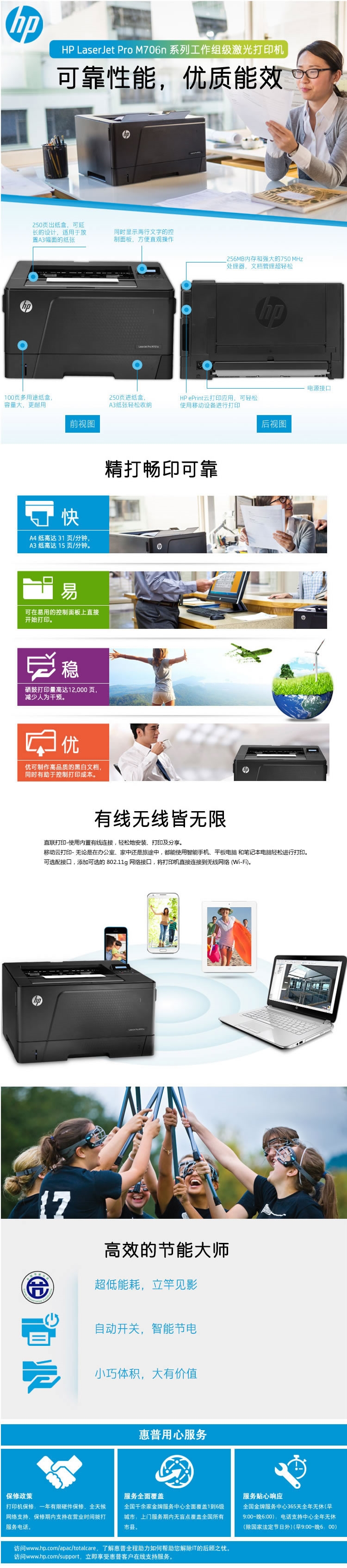 惠普(HP)LaserJet Pro M706n A3 黑白激光打印機