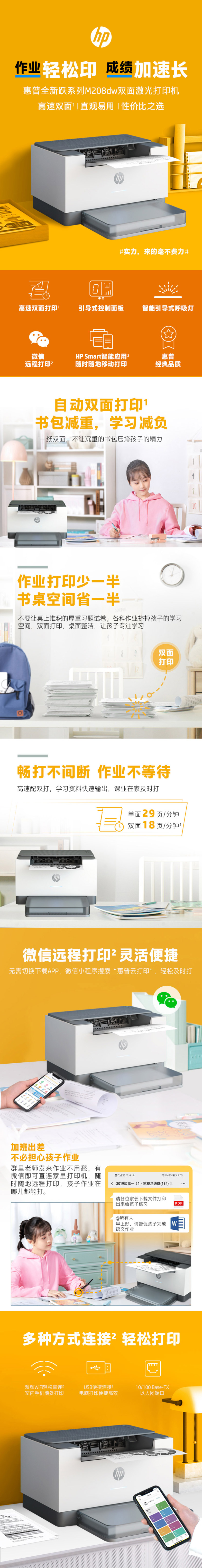 惠普(HP)LaserJet M208dw A4 黑白激光打印機