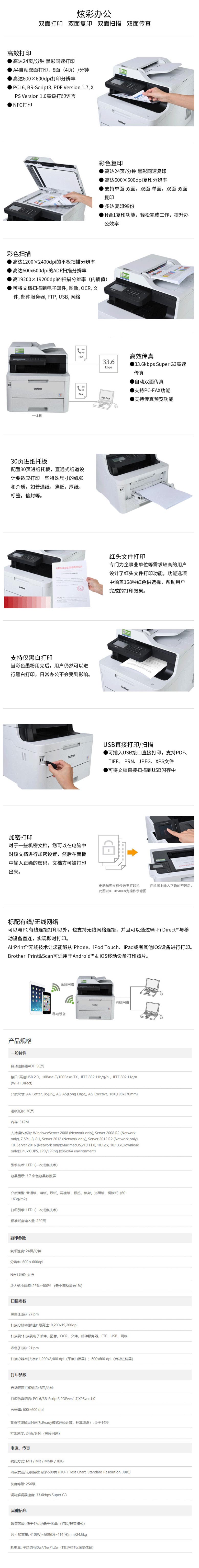兄弟(brother)MFC-9350CDW 彩色數碼多功能一體機 雙面打印 雙面復印 雙面掃描 雙面傳真 有線/無線網絡 速度:24PPM