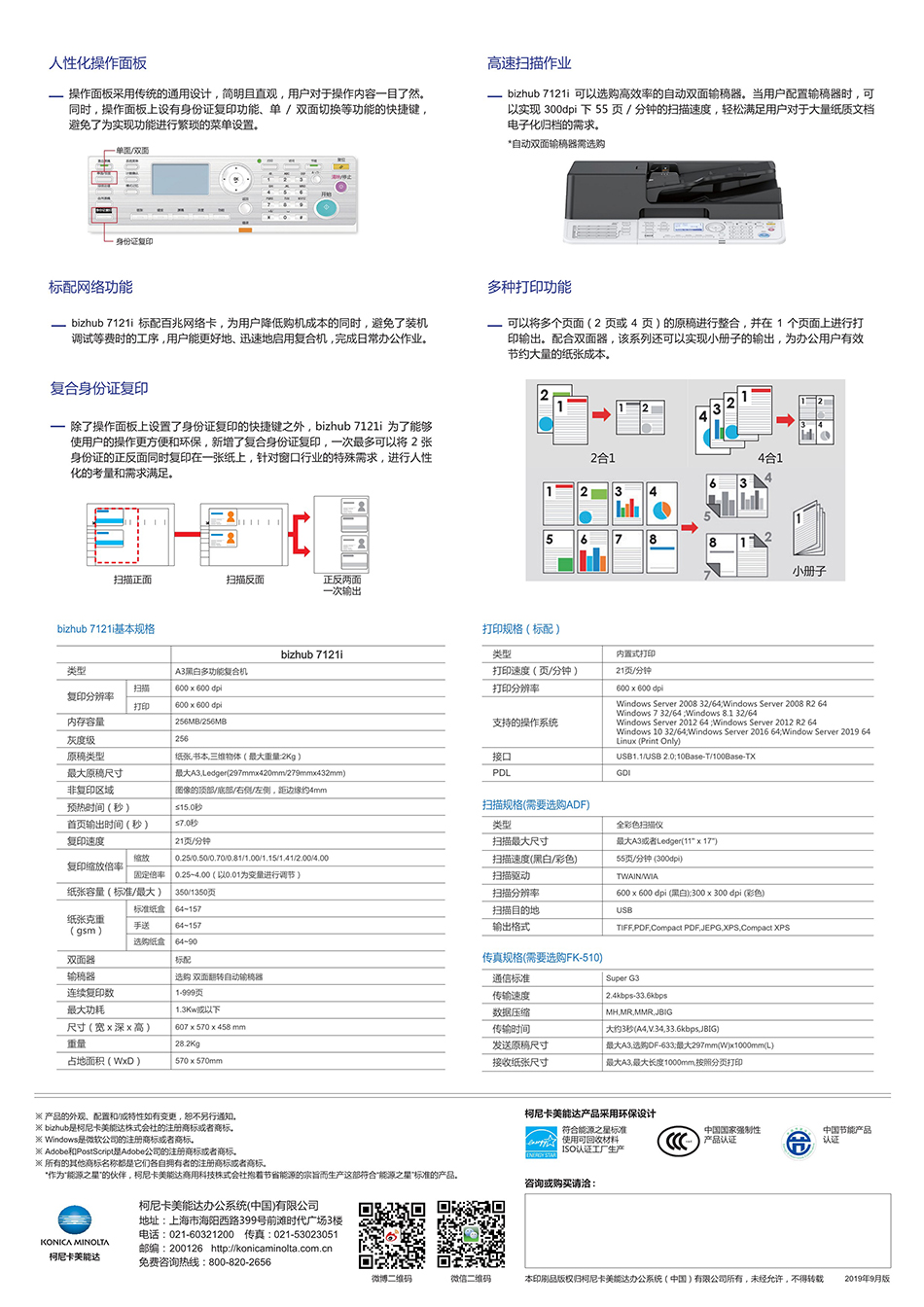 柯尼卡美能達(dá)bizhub 7121i-21ppm 黑白復(fù)合機(jī) 標(biāo)配單紙盒+雙面輸稿器