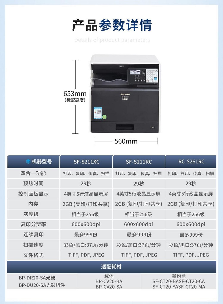 夏普 SF-S211XC A3彩色數碼復合機(標配蓋板/單紙盒)