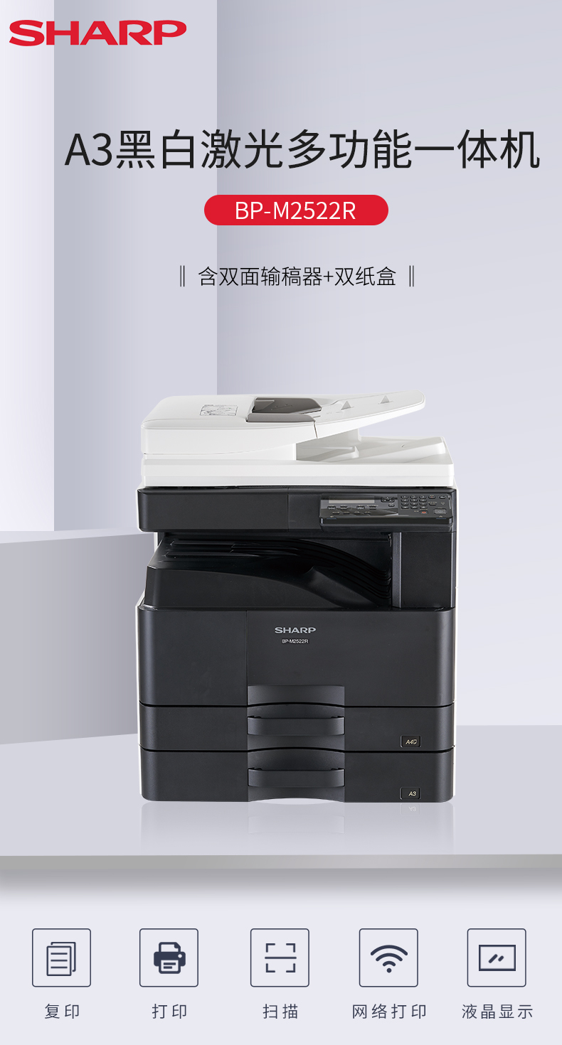 名稱 | 夏普 BP-M2522R 黑白數碼復印機(主機/雙面送稿器/雙紙盒/工作臺) |