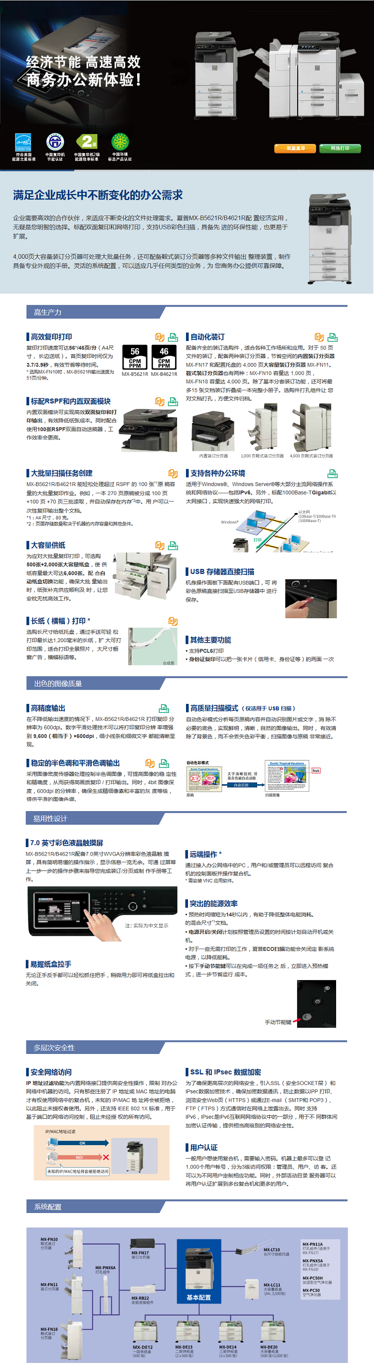 規格 | MX-B5621R 黑白數碼復印機(主機/雙面送稿器/一層供紙盒DE12/走紙連接組件RB22/鞍式裝訂FN10) |