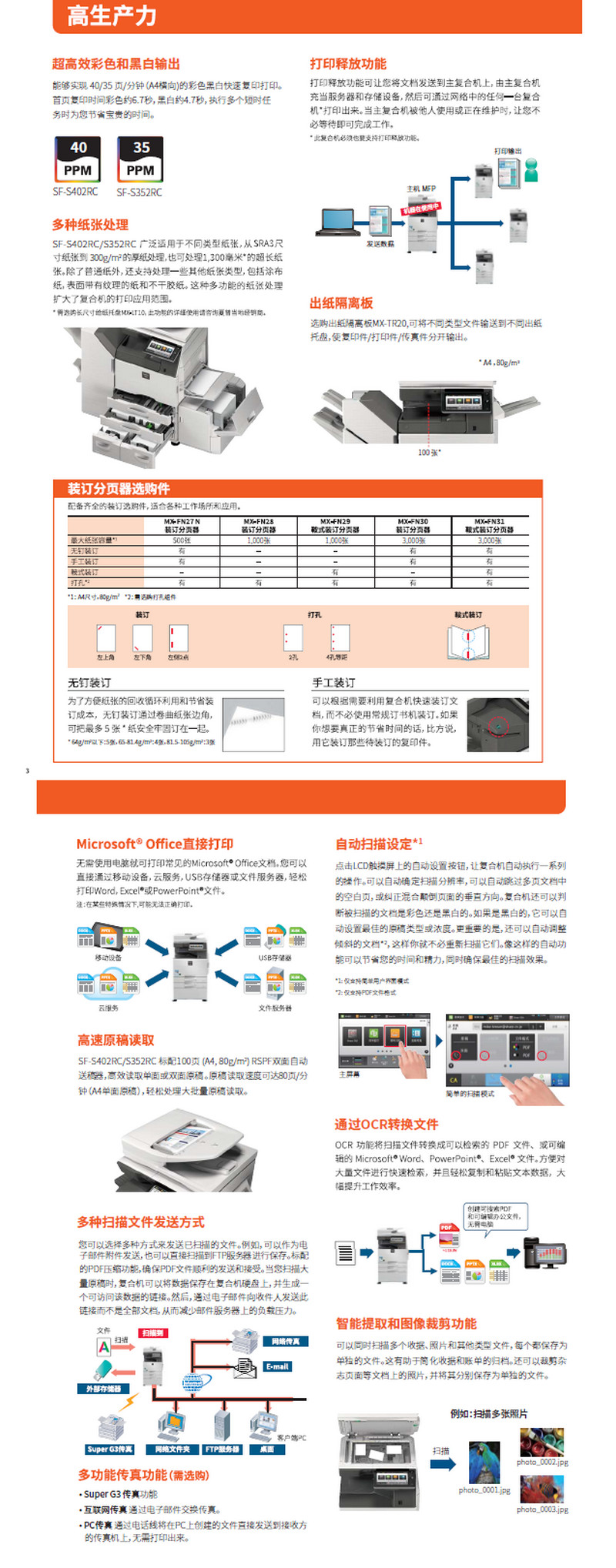 名稱 | 夏普SF-S402RC 彩色復印機 (主機+雙面送稿器+雙紙盒帶落地原裝工作臺DE25N+無線wifi)(單位:套) |