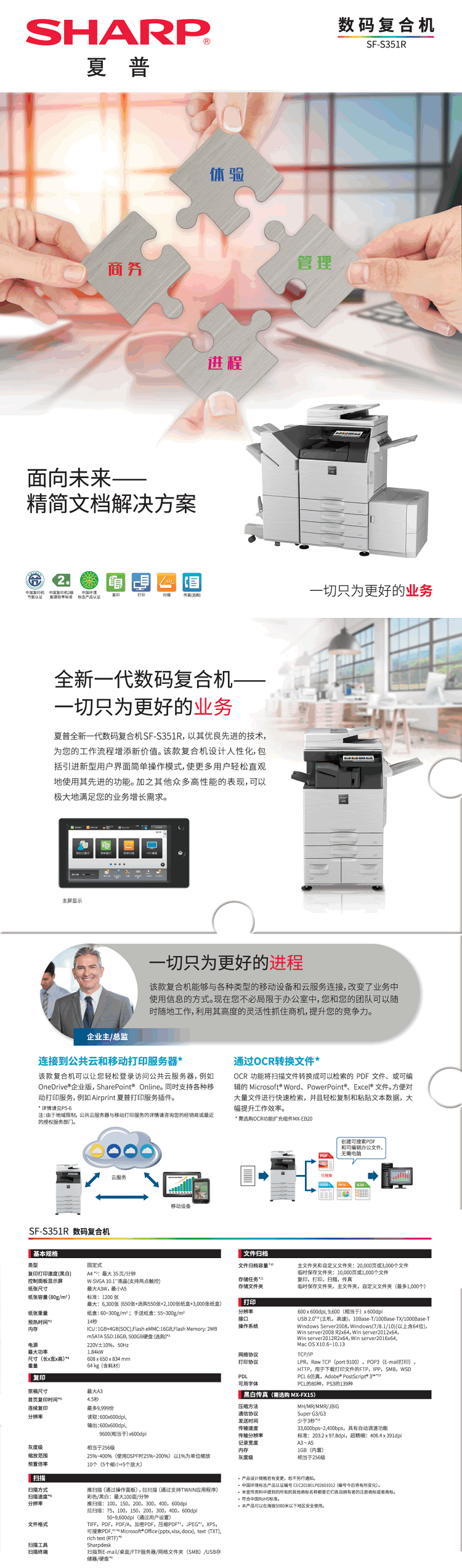 規(guī)格 | SF-S351R黑白數(shù)碼復(fù)印機(jī)(主機(jī)+雙面送稿器+雙紙盒帶落地原裝工作臺(tái)DE25N) |