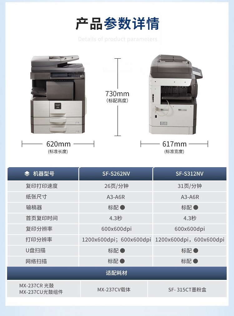 規格 | SF-S262NV 黑白數碼復合機(主機/SF-CS12第二紙盒/工作臺) |