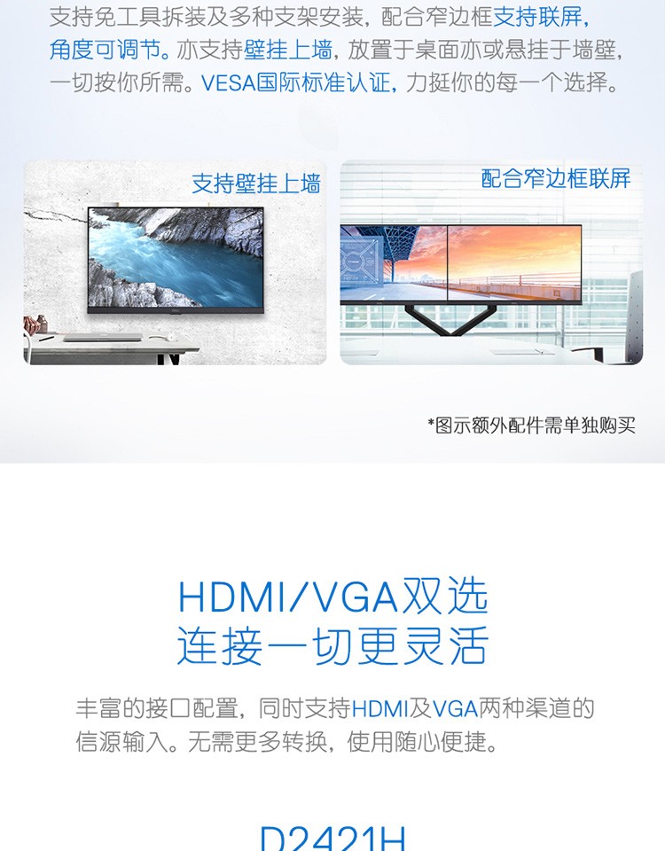 戴爾 DELL D2421H 23.8英寸 IPS 顯示器 1VGA 1HDMI 三年保