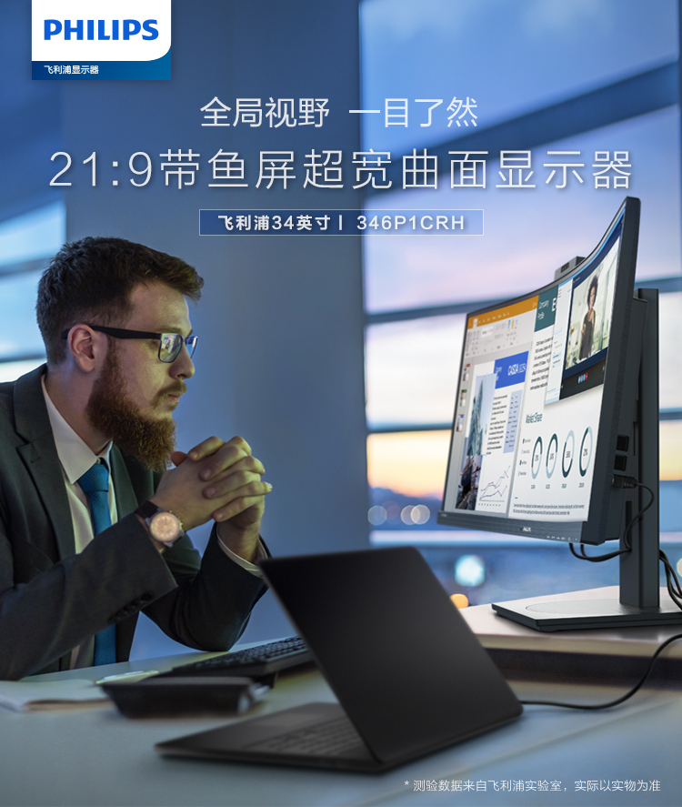 飛利浦 34英寸 2K高清 21:9帶魚(yú)屏1500R HDR400 Type-c 90W反向充電 升降旋轉(zhuǎn) 內(nèi)置音箱 電腦顯示器 346P1CRH