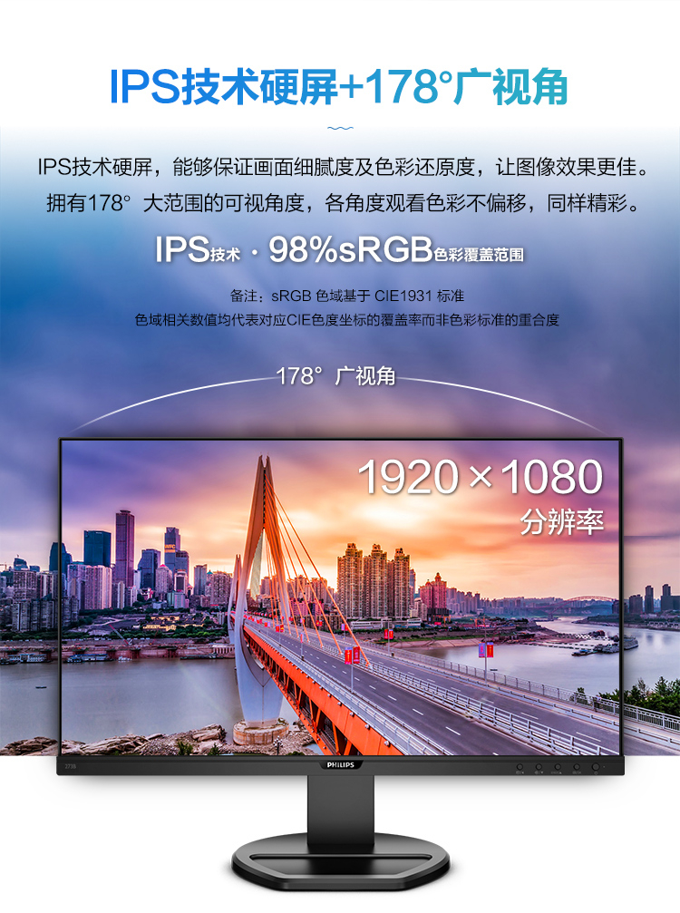 飛利浦(PHILIPS) 271S8QJSB 顯示器 27寸 1920*1080 IPS屏