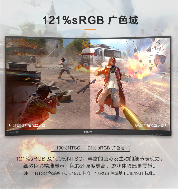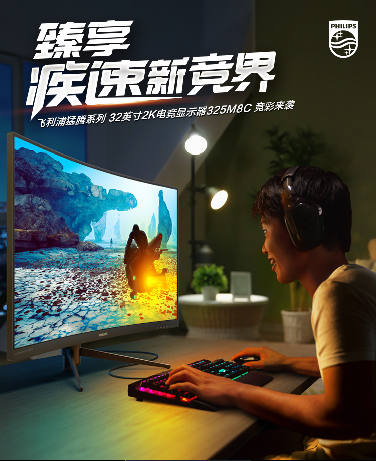 飛利浦猛騰 31.5英寸 2K/1500R曲面 144Hz/Adaptive Sync 1ms 廣色 域 游戲電競 吃雞顯示器 HDMI 325M8C