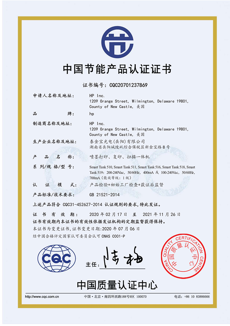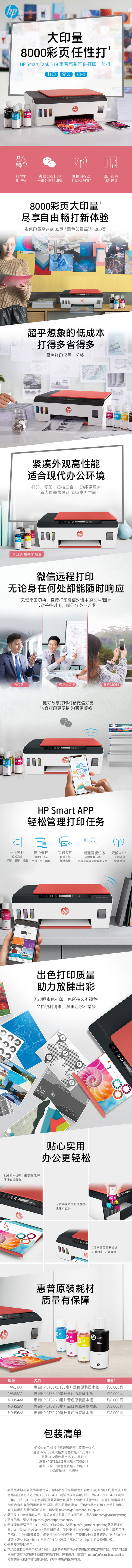 惠普(HP) 彩色原裝連供打印一體機 smart tank519