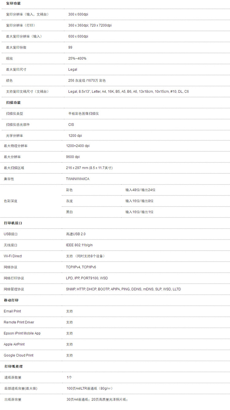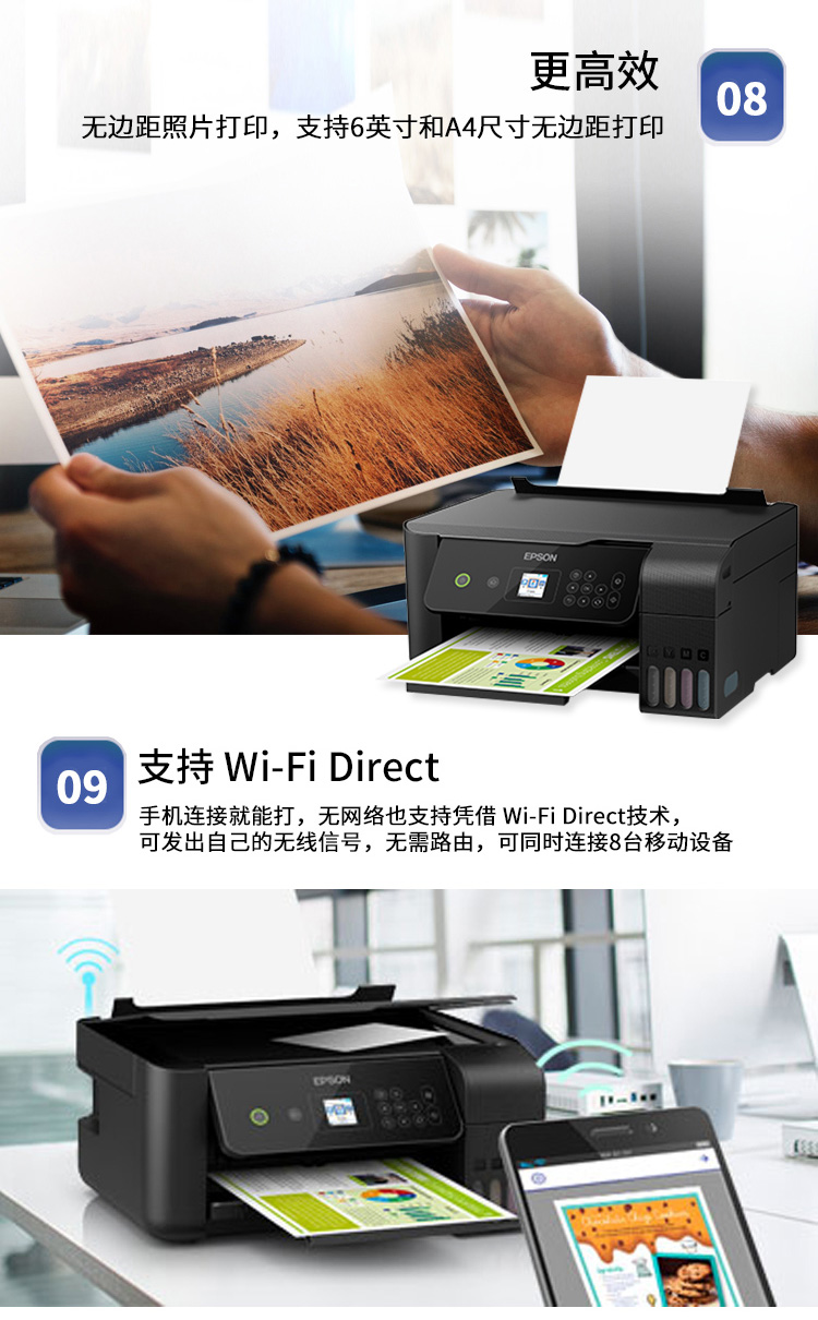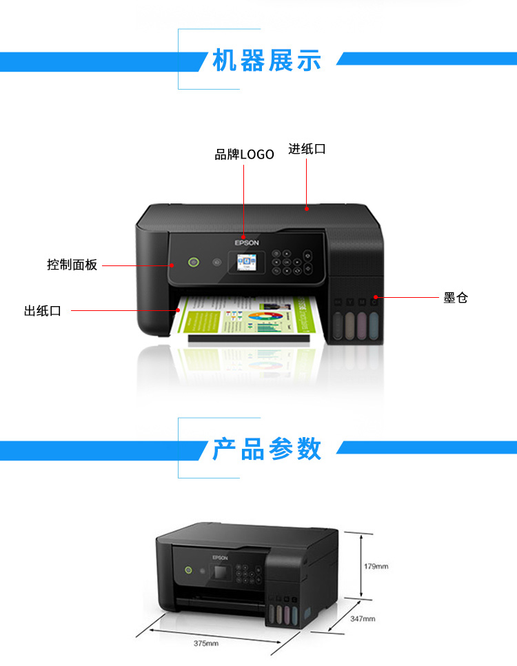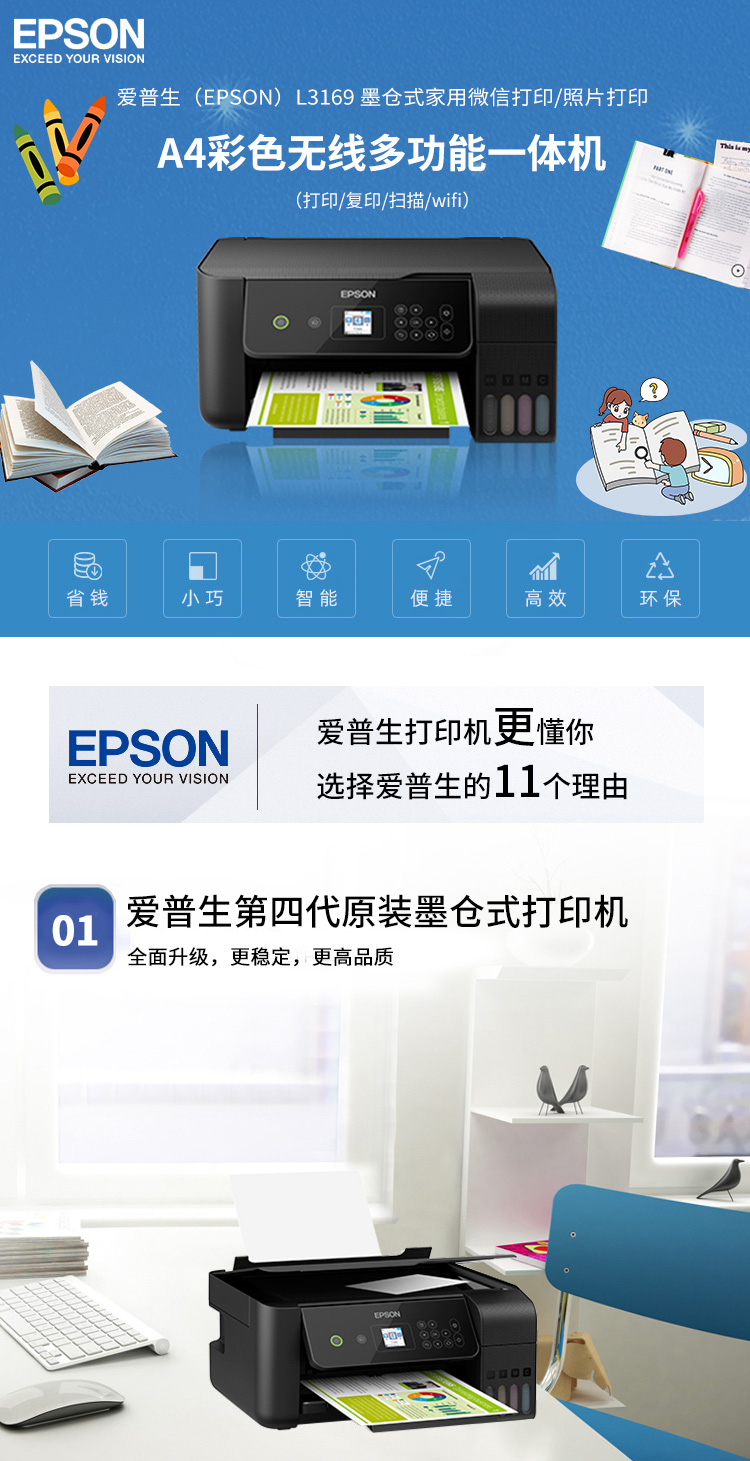 愛普生(EPSON) L4166 L4168 L4266 L4268墨倉彩色無線多功能一體機 L4268【L4168升級版】【彩色三合一】 官方標配