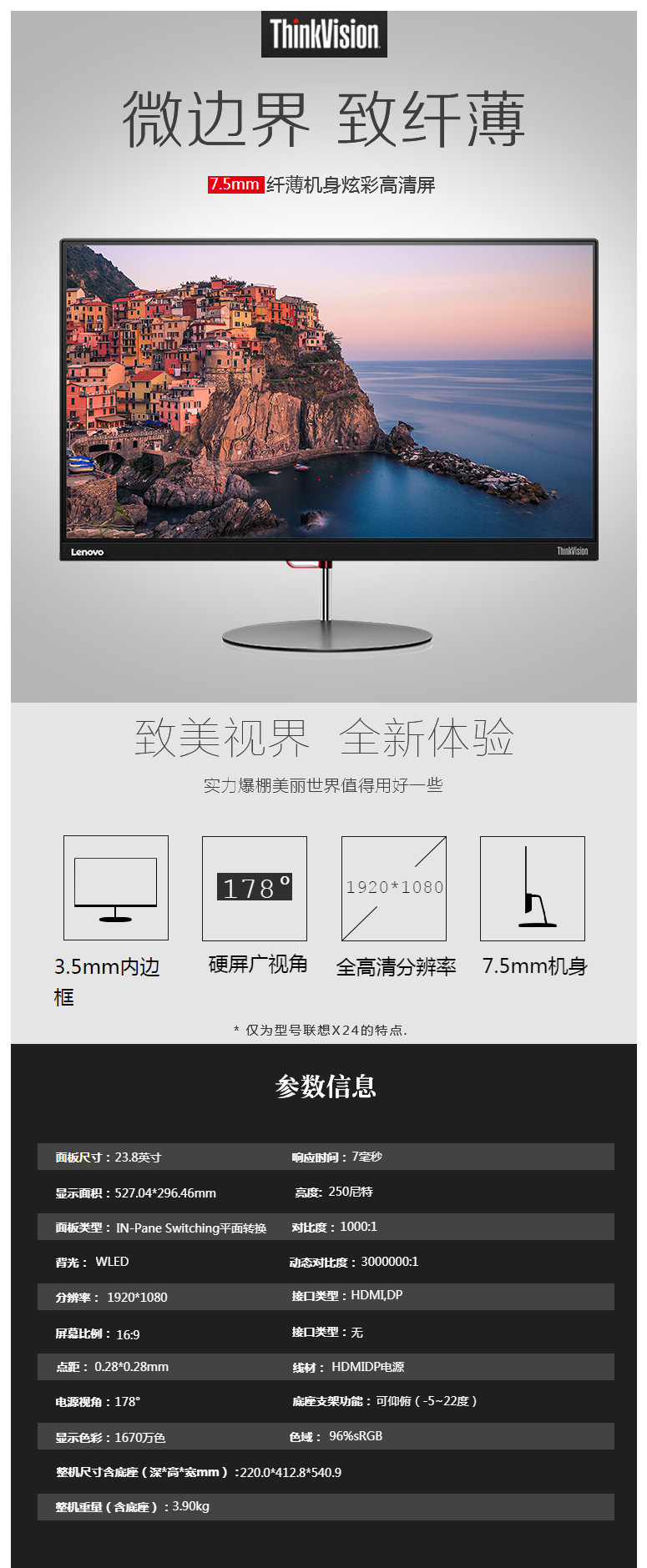 聯想ThinkVisino X24i-20 顯示器23.8寸 單位:臺