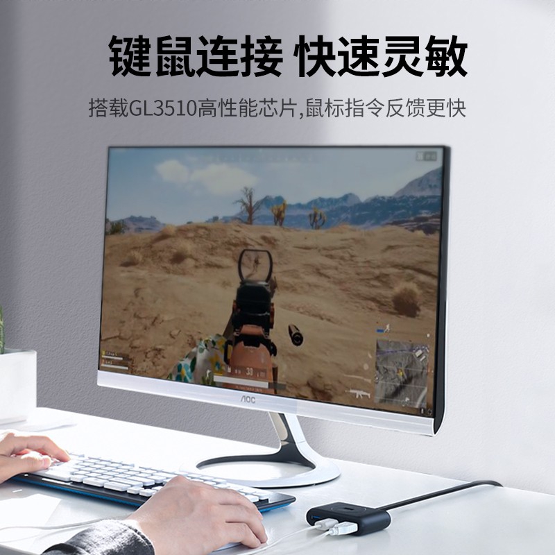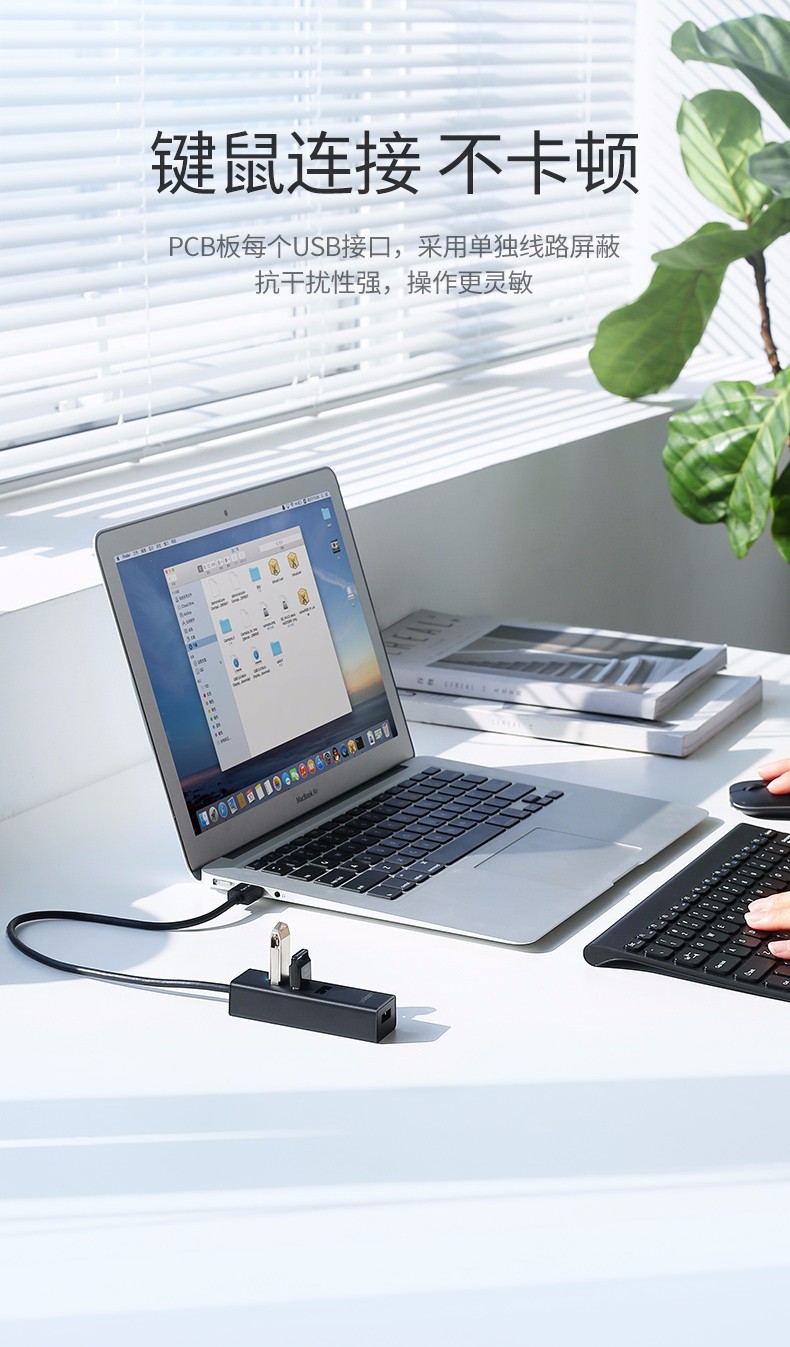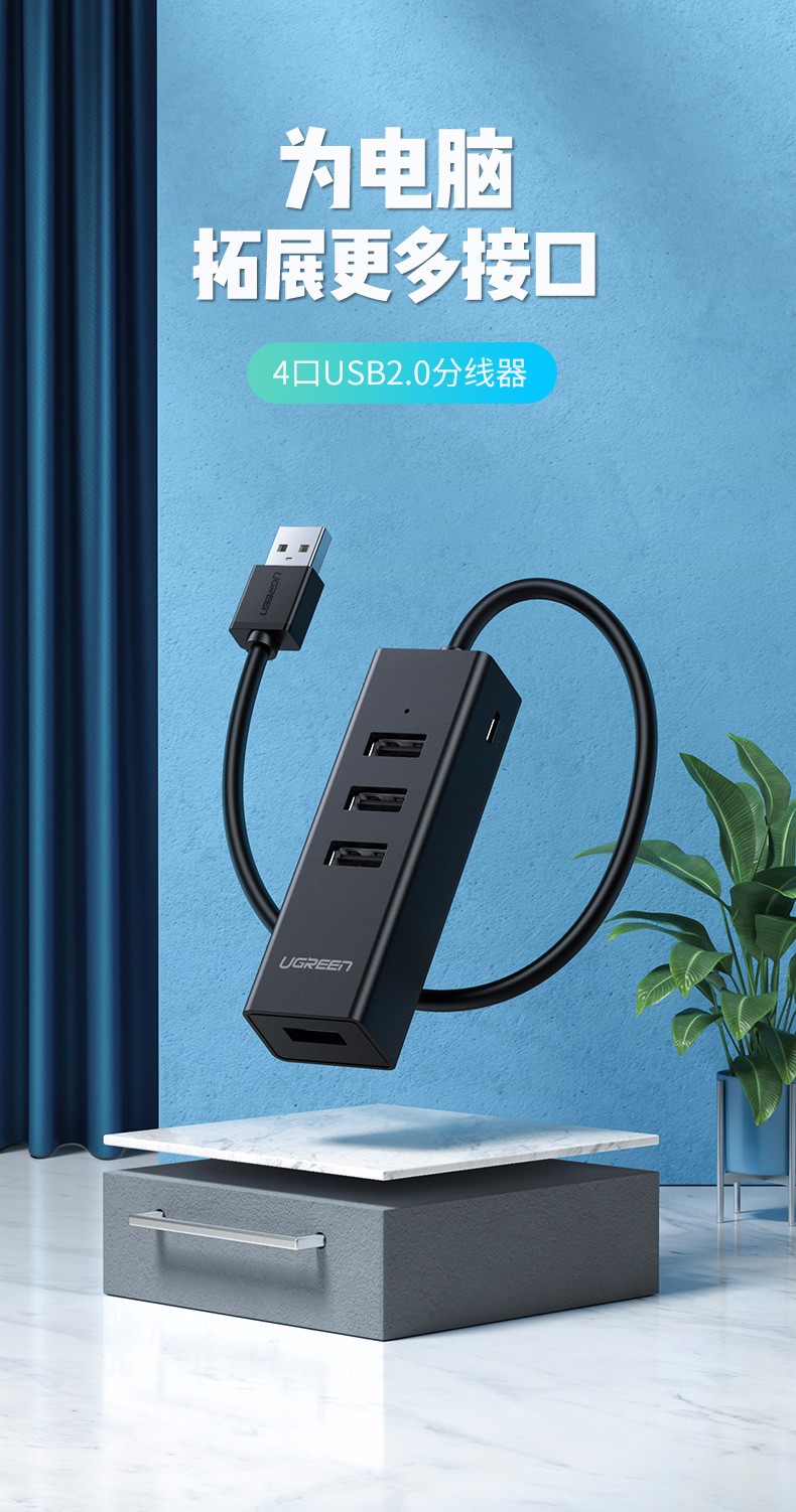綠聯(UGREEN) USB3.0分線器2.0擴展器多接口一拖四七十插口u盤外接多功能帶供電口hub 【USB3.0標準款X黑色】 2米