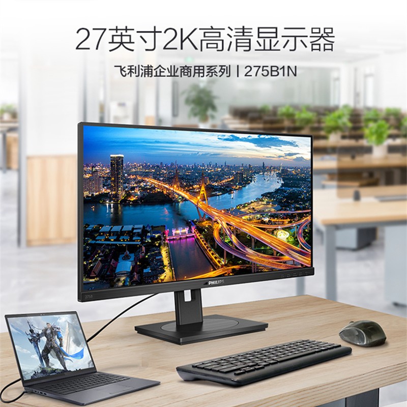 飛利浦275B1N顯示器27英寸/2K高清/IPS硬屏/75Hz(臺)