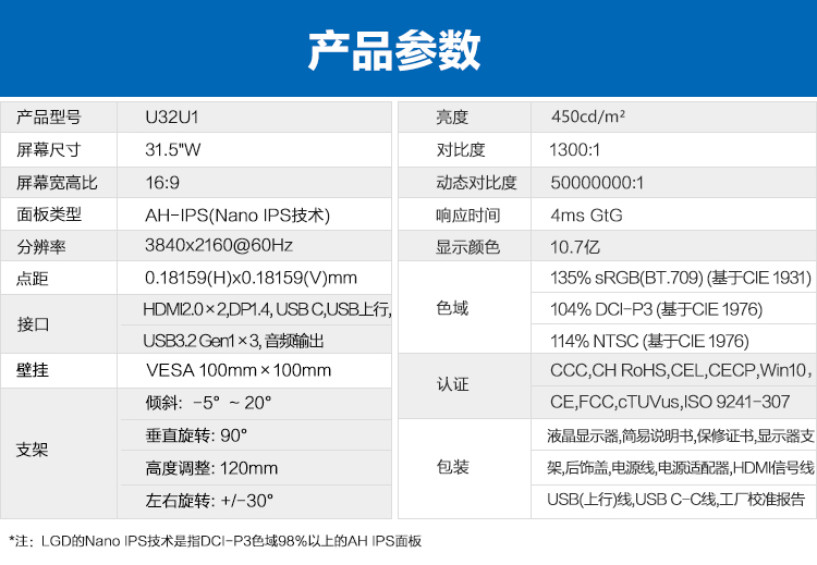 分辨率 | 4K(3840*2160) |