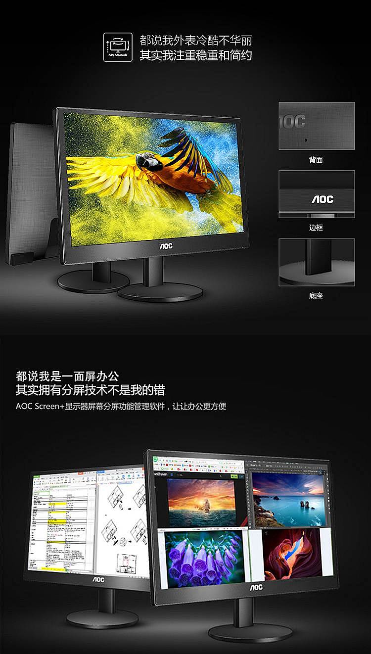 AOC/E1670SWUE顯示器黑色15.6英寸/VGA(臺)