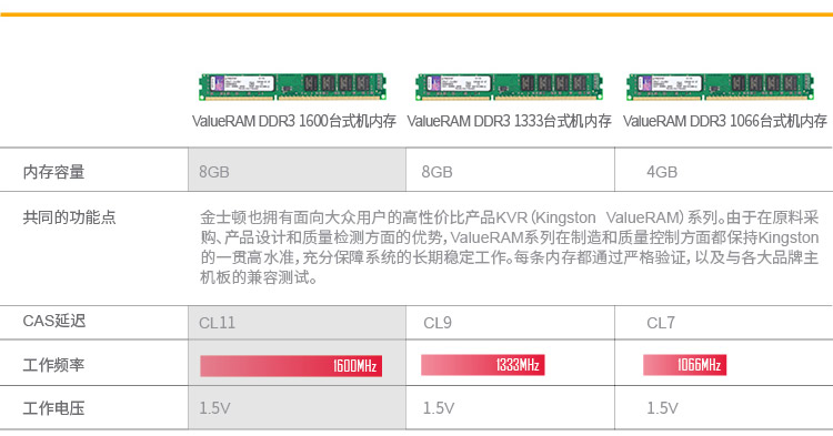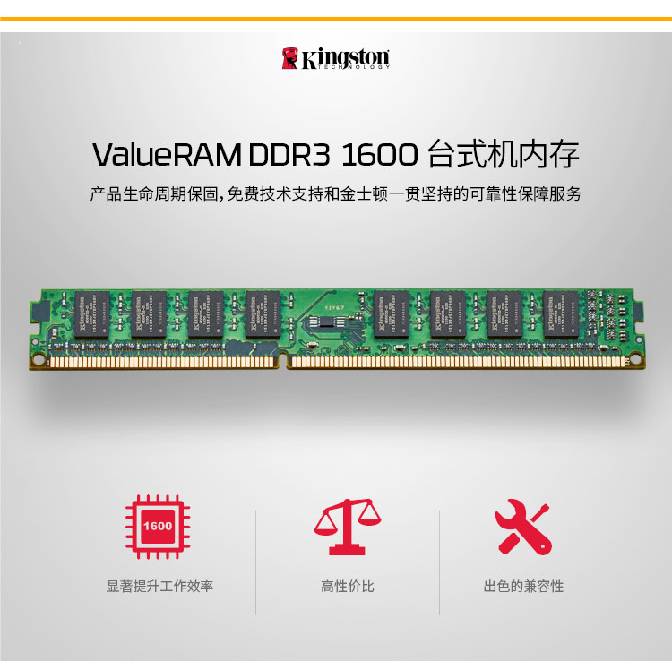 金士頓 (Kingston) 8GB DDR3 1600 臺式機內存條