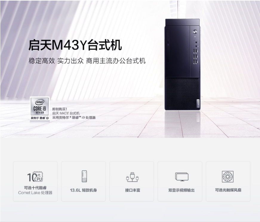 聯想(Lenovo)啟天M43Y-A013臺式計算機(i5-10500/8G/128G固態+1TB/DVDRW/核顯/260W/中興新支點V3/21.5英寸/三年保修)