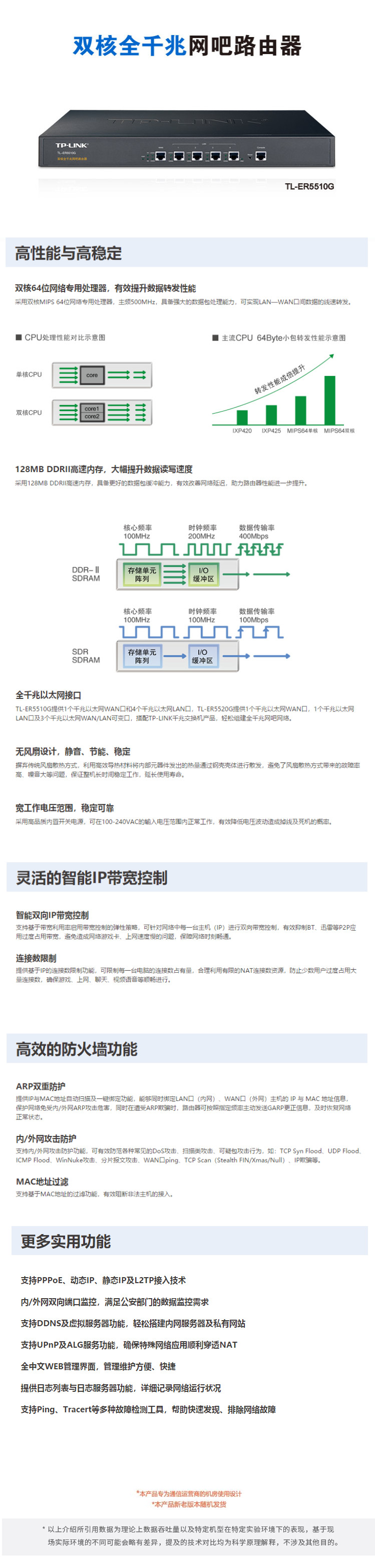 TP-LINK TL-ER5510G 企業(yè)級千兆有線路由器 防火墻×標配