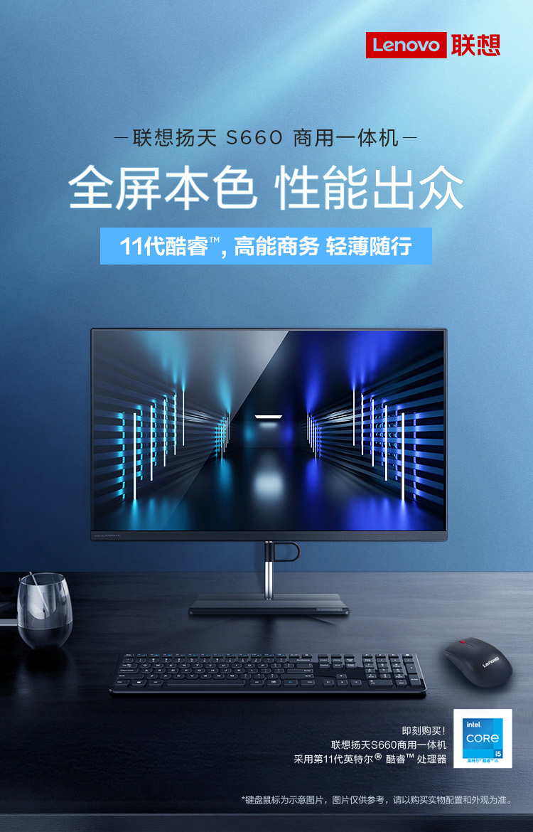 聯想(Lenovo)揚天S660 23.8英寸窄邊框商用一體機臺式電腦 i3-1115G4/8G/256G固態/集顯/win10