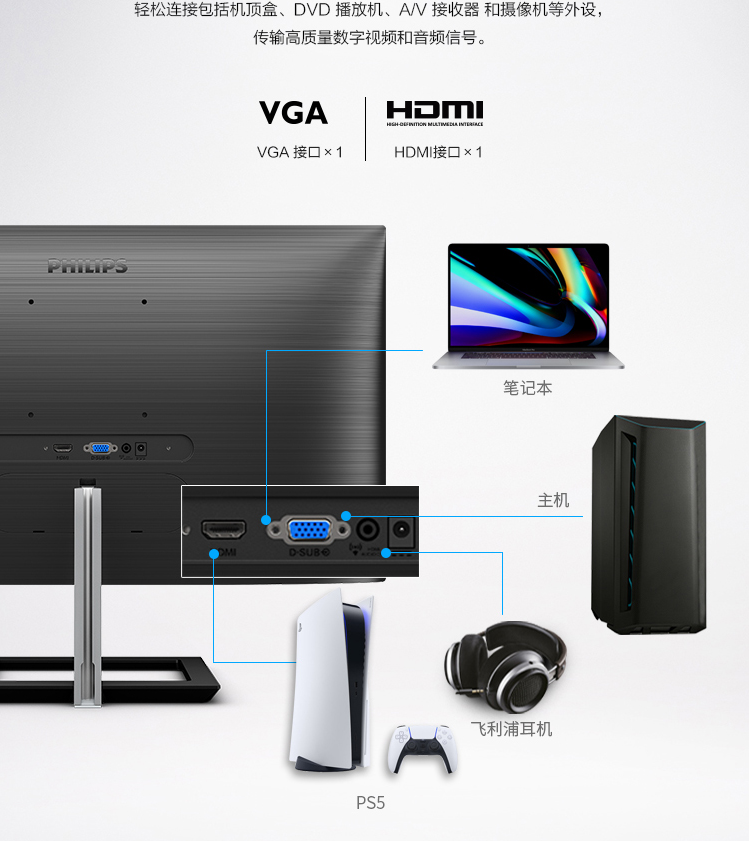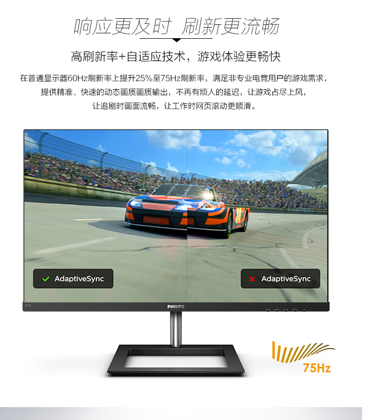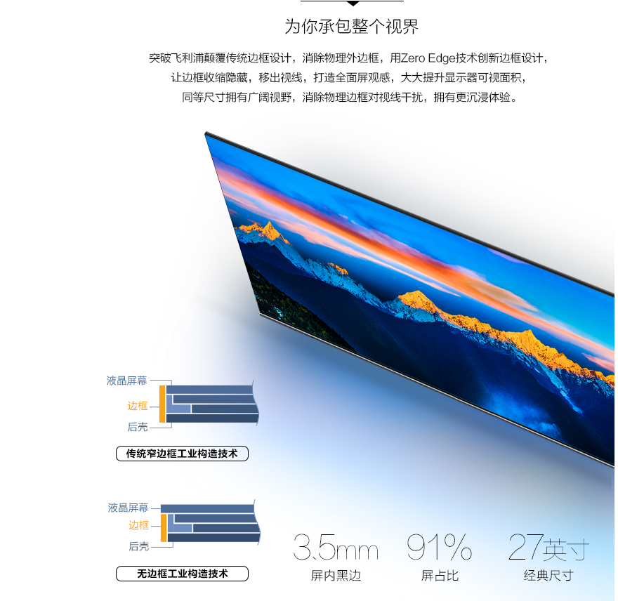 飛利浦 27英寸 全面屏 LGD-IPS 75Hz刷新 HDMI接口 可壁掛 液晶電腦顯示器 拼接屏 顯示屏 271E1
