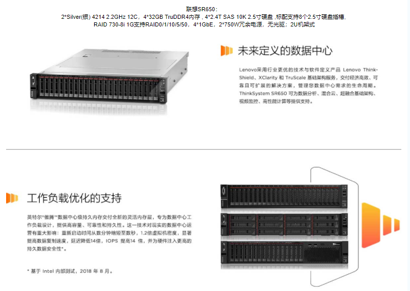 聯想服務器-ThinkSystem SR650(2*4214/4*32G/4*2.4T/730-8i 1G/四口千兆/2*750W)