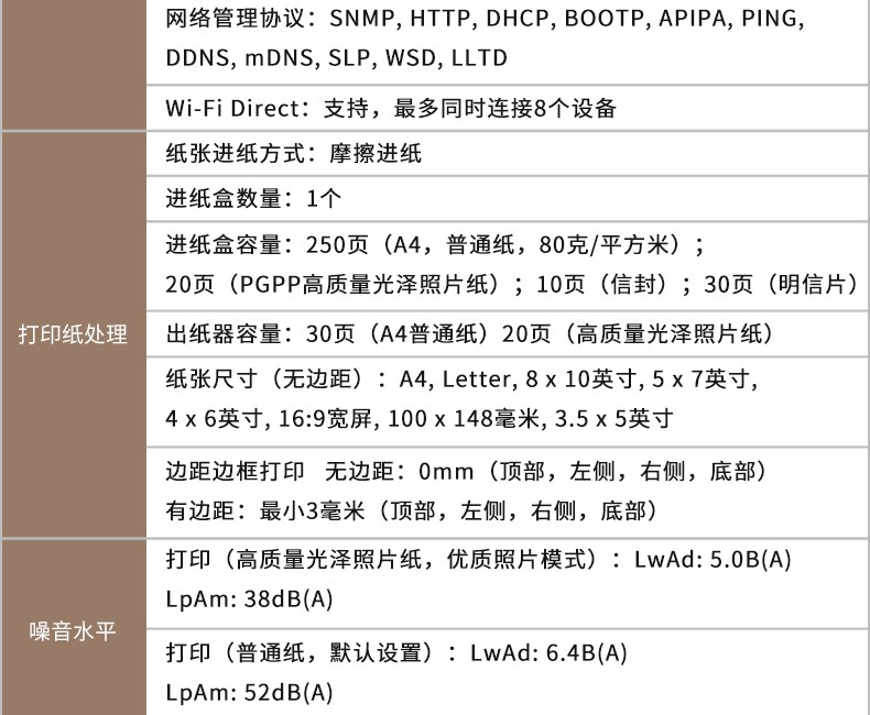 照片打印 | 支持照片打印 |