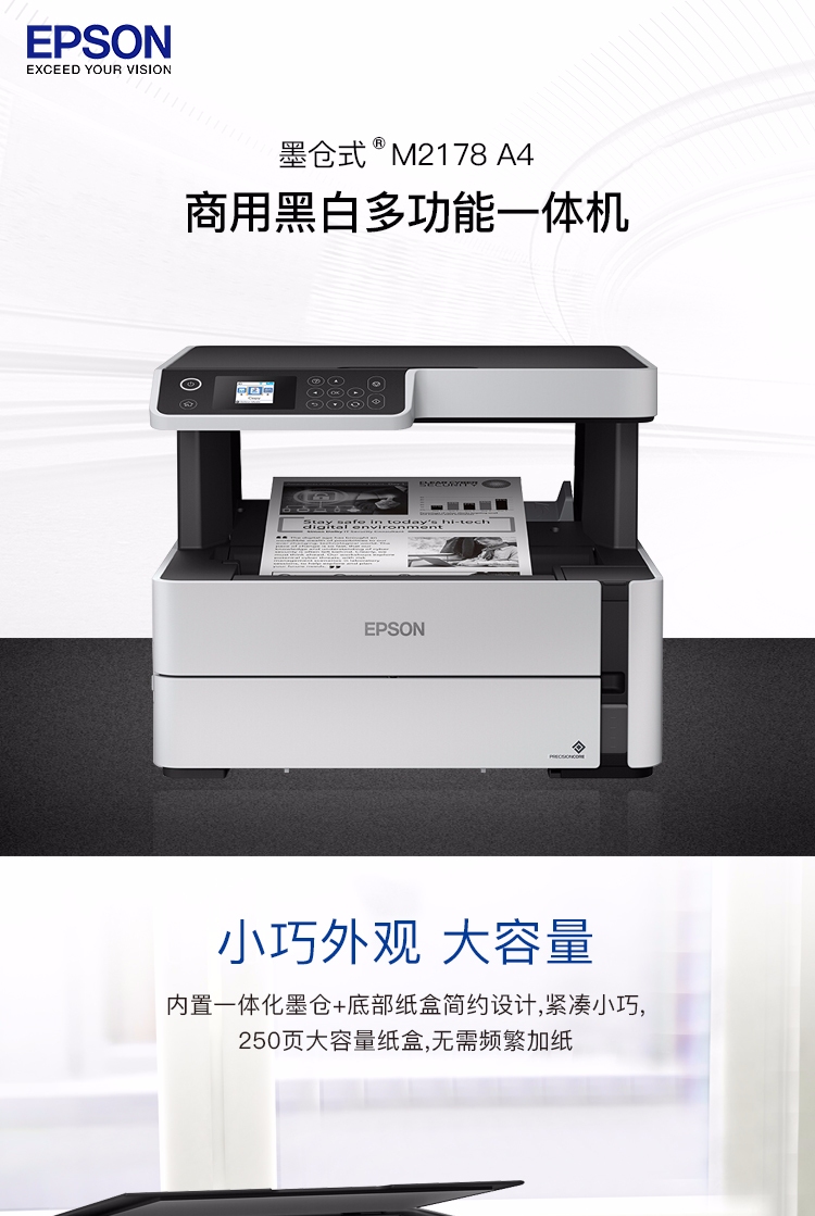 愛普生(EPSON)M2178 A4黑白大容量墨倉商用噴墨多功能一體機 自動雙面打印