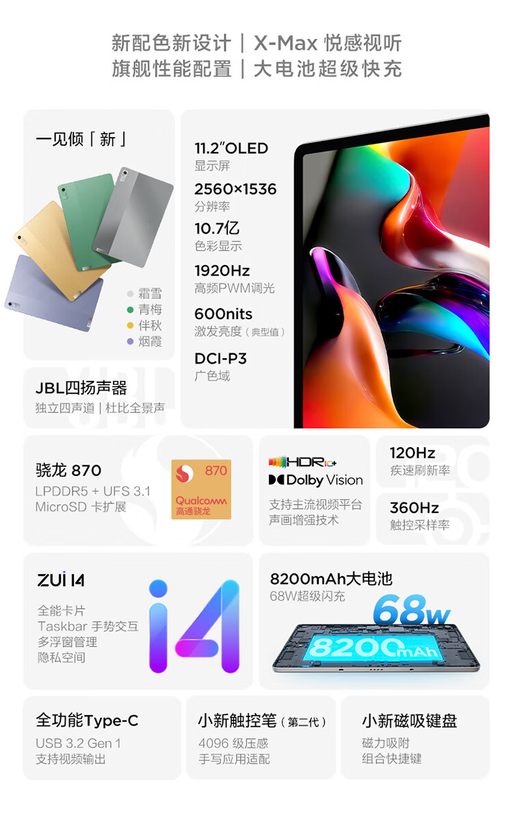 聯(lián)想小新Pad Pro 2022 11.2英寸 驍龍870 影音辦公學(xué)習(xí)游戲平板 萊茵全局護(hù)眼 2.5k 120Hz OLED 8G+128G 青梅
