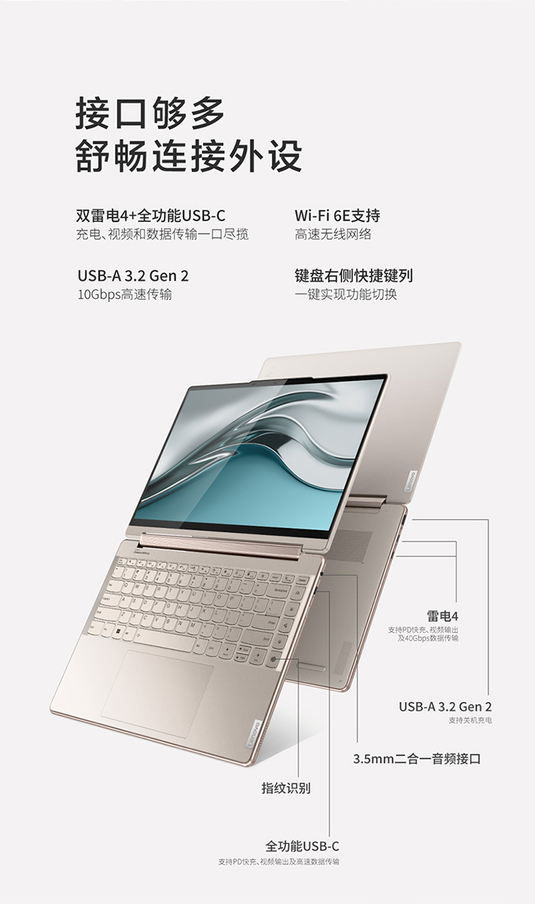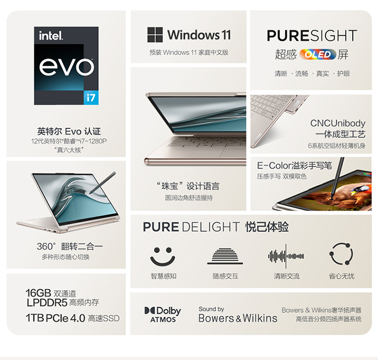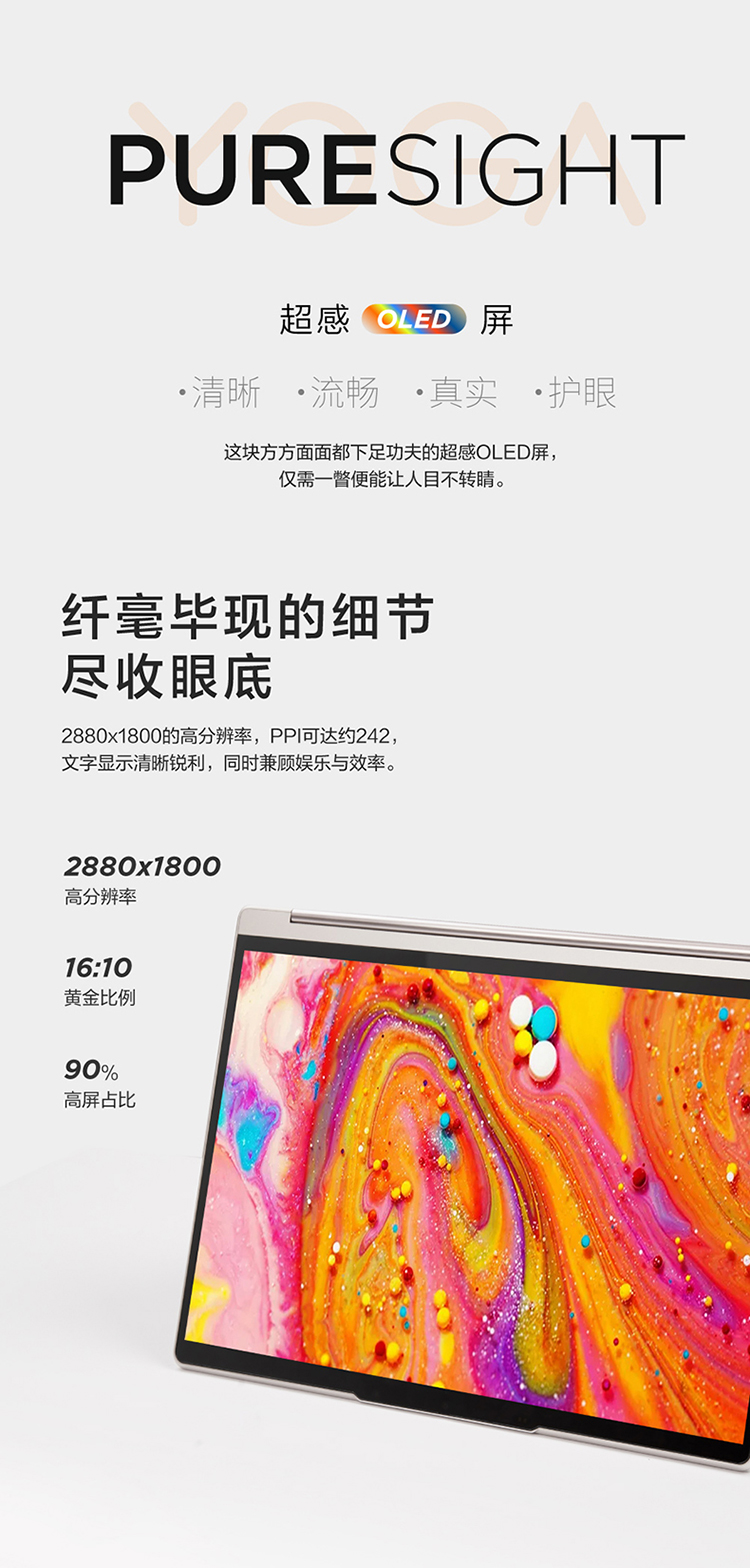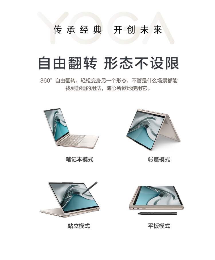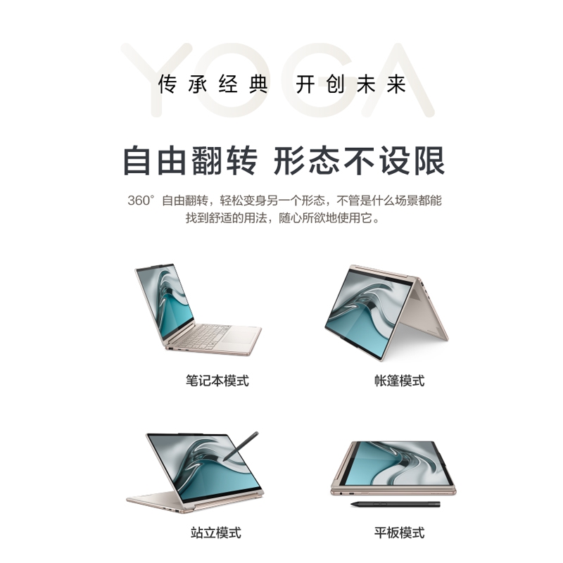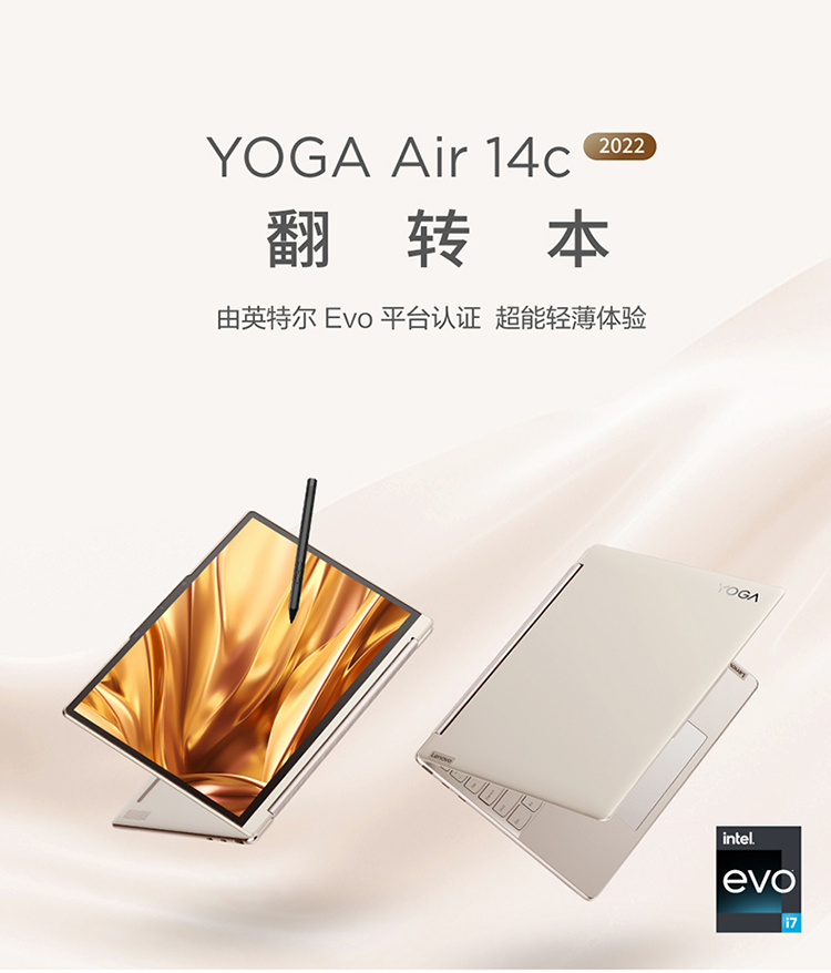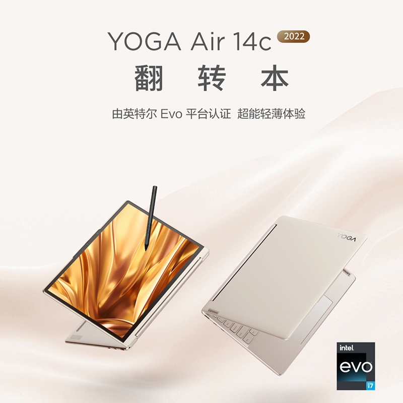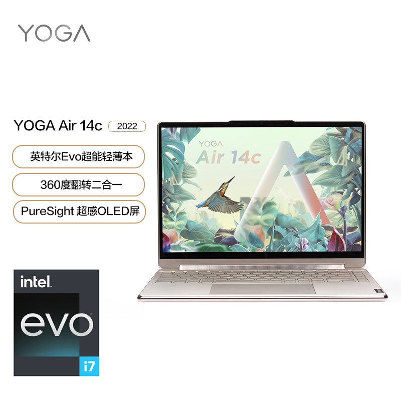 聯想筆記本電腦Yoga Air14c 英特爾酷睿i7 輕薄本(12代i7-1280P 16G 1T 2.8K OLED高刷屏 翻轉觸控 取色筆)