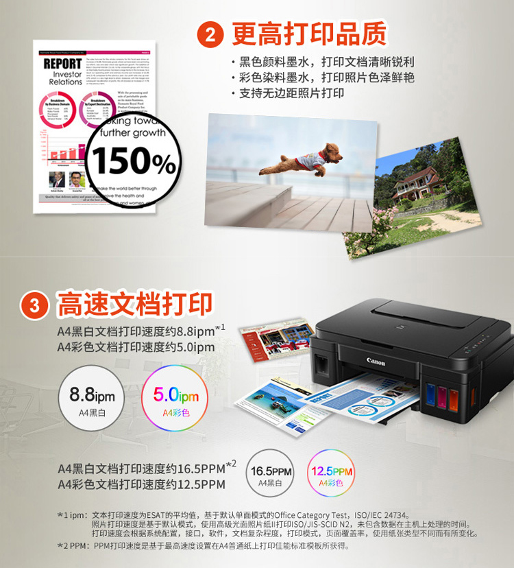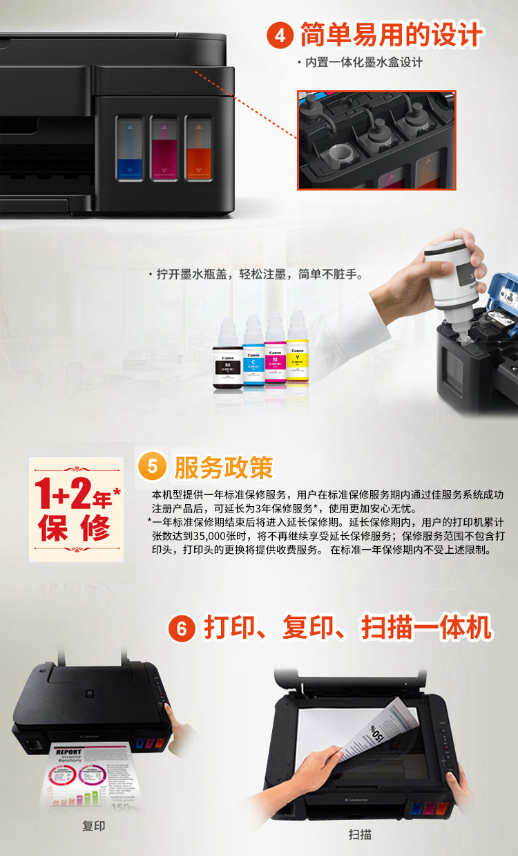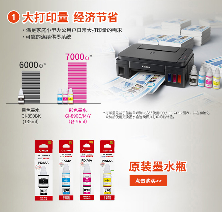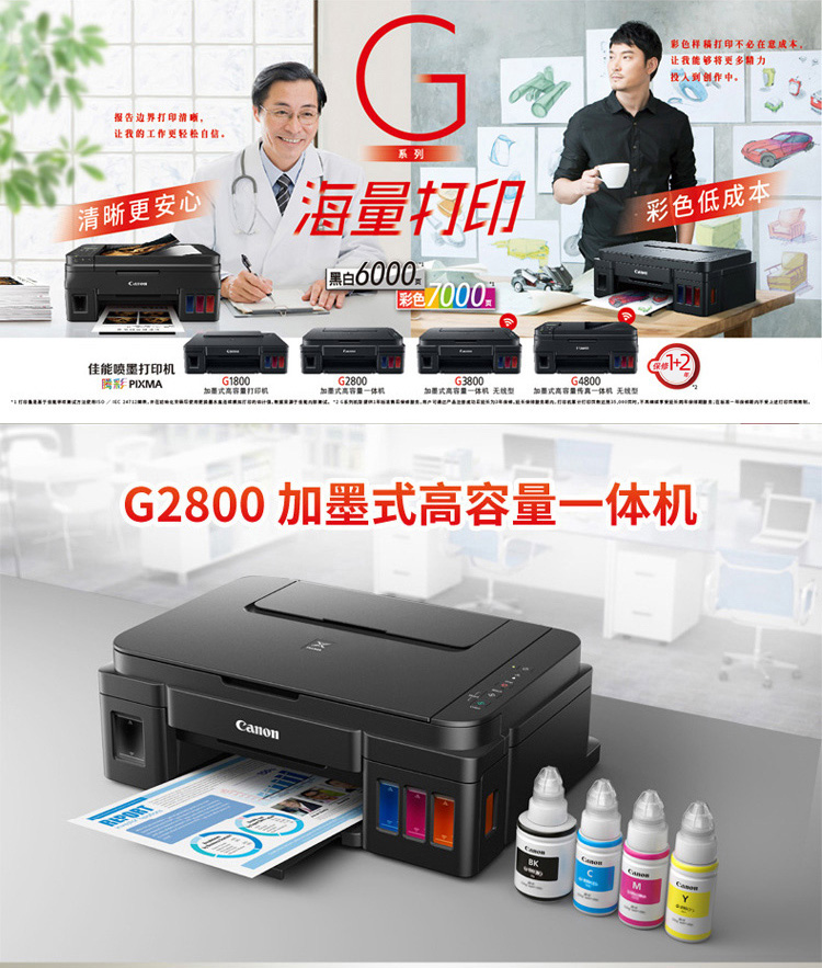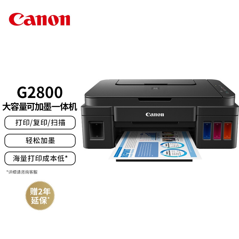 佳能(Canon)G2800大容量可加墨彩色多功能一體機(打印/復印/掃描/作業打印/照片打印機 學生/家用)
