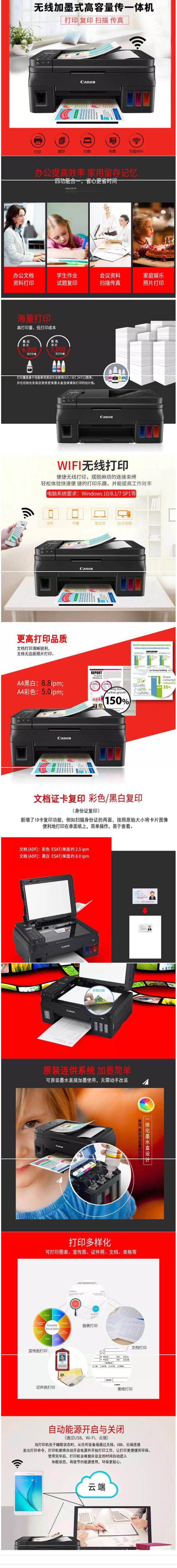 佳能(Canon)G3871大容量可加墨彩色多功能無線一體機(打印/復印/掃描/雙頻WiFi 支持5G 學生/家用)