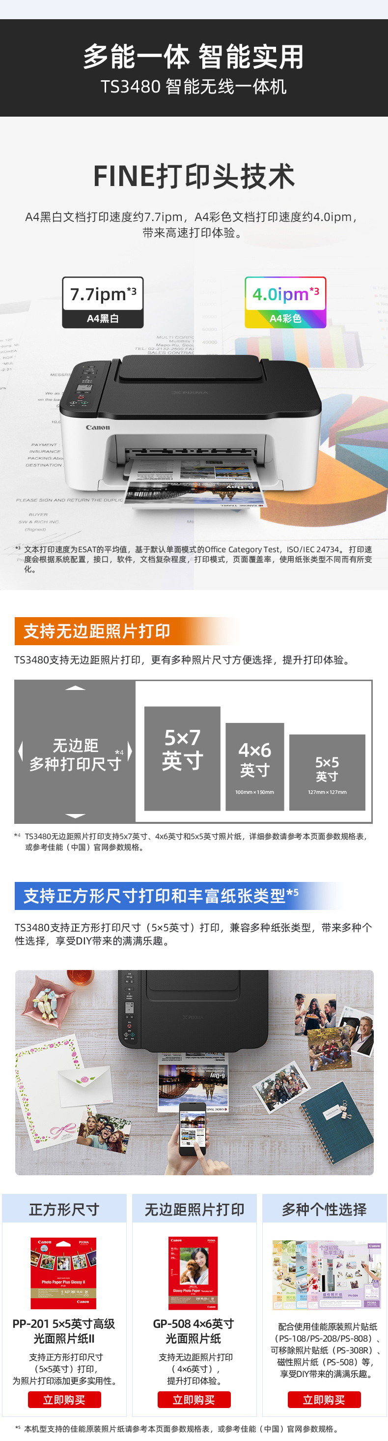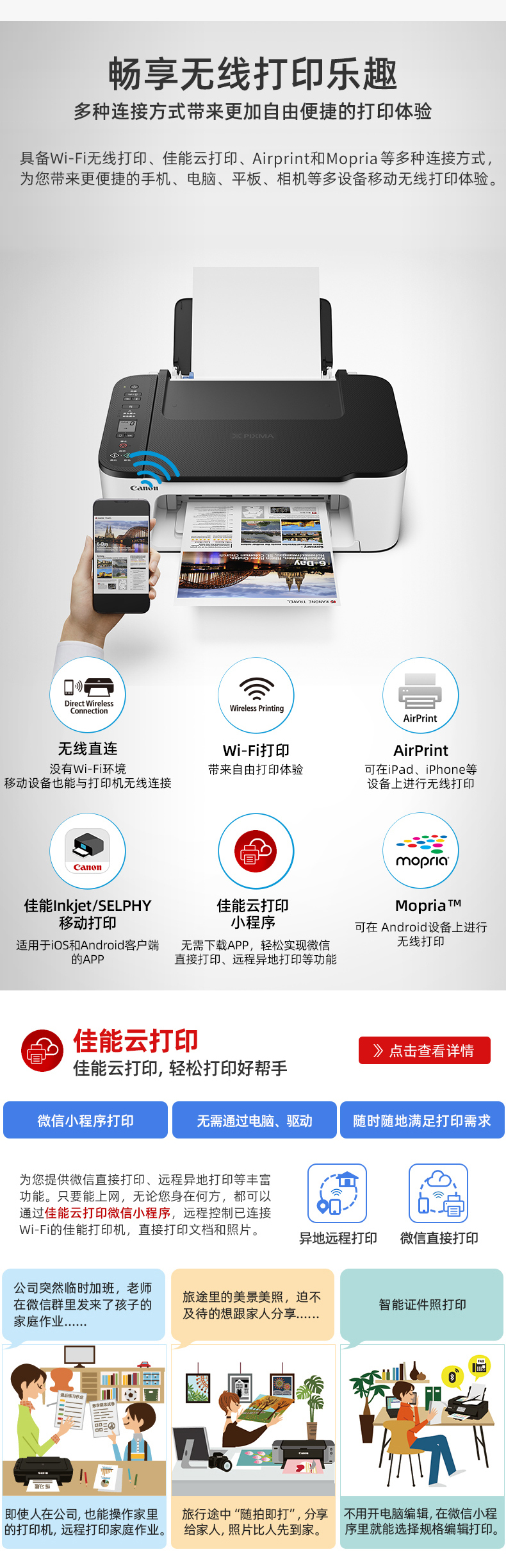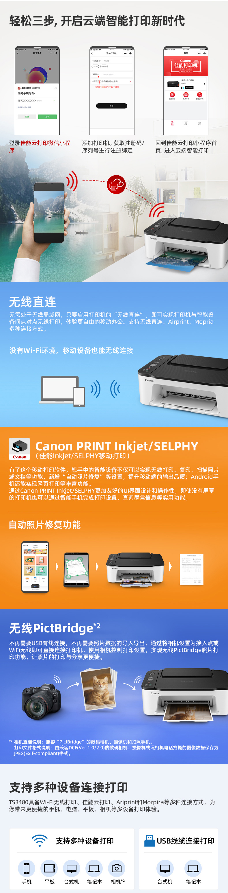 佳能(Canon)TS3480(白)無線學生/家用彩色噴墨多功能一體機
