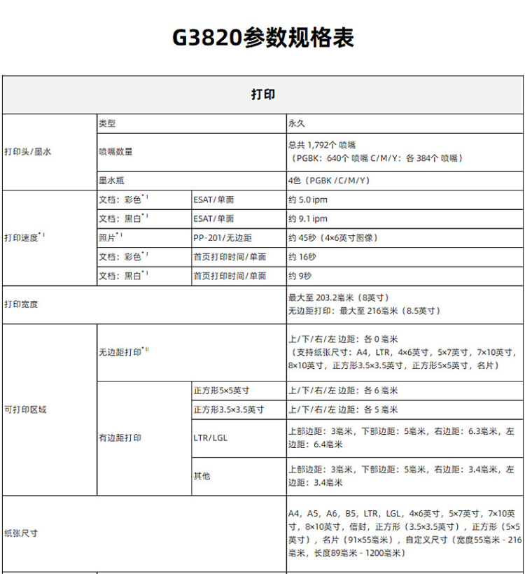 無邊框打印 | 支持無邊框打印 |