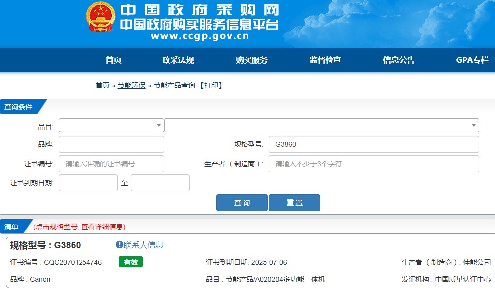 佳能(canon) G3860 多功能一體機