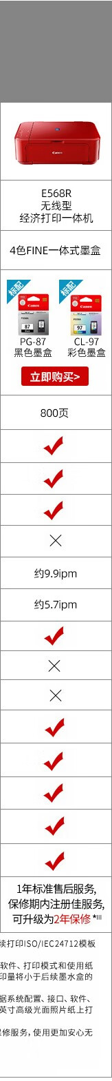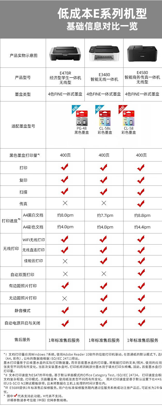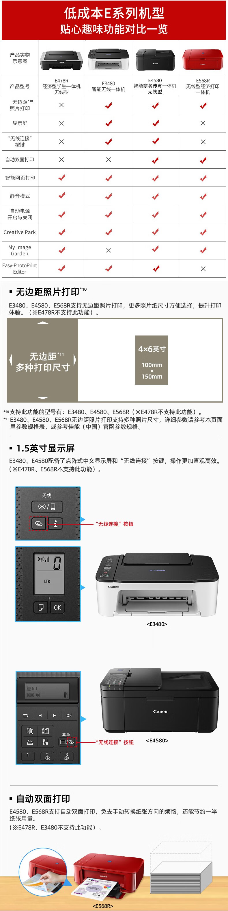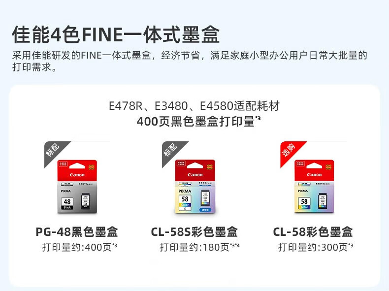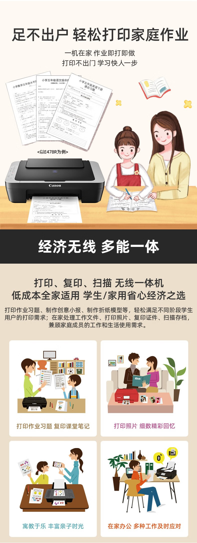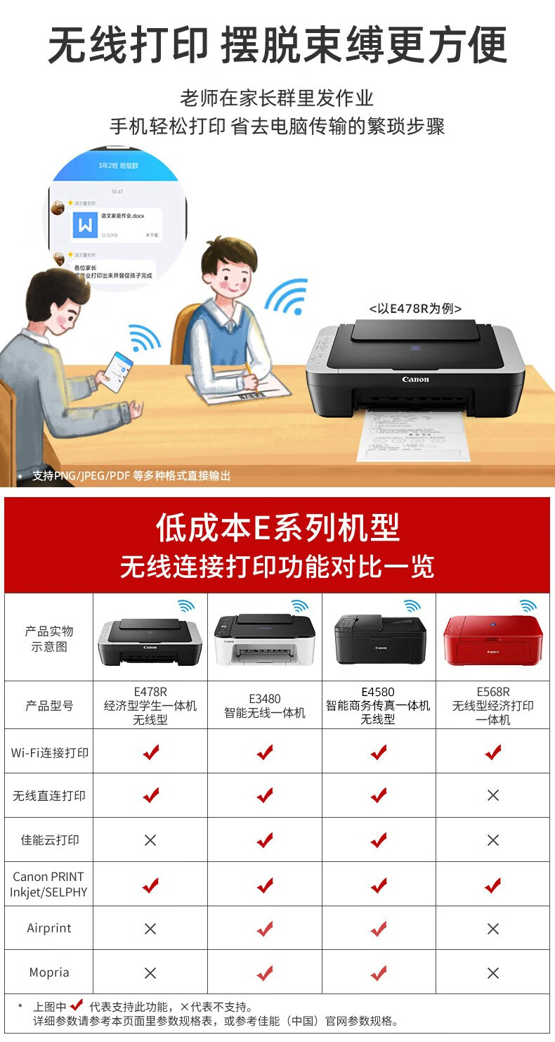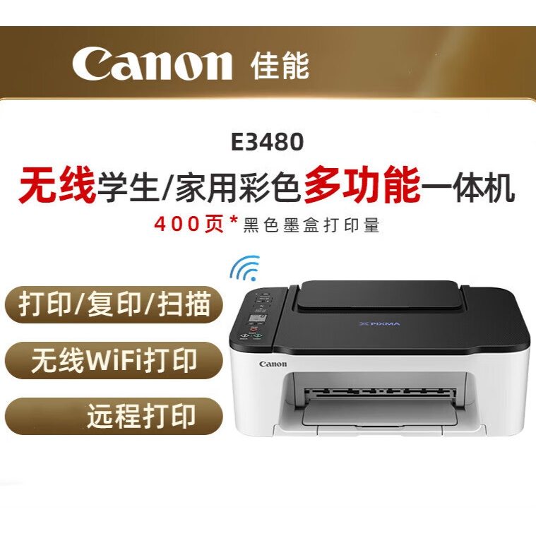 佳能(Canon)E3480彩色噴墨打印復印掃描傳真一體機學生 E3480無線款【手機++遠程云打印】支持多尺 官方標配